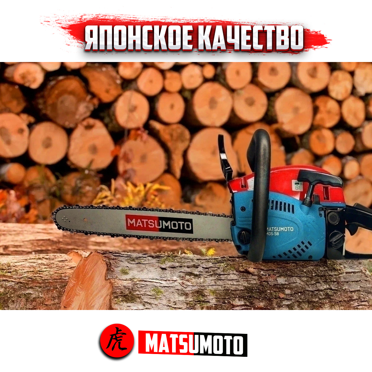Matsumoto/МАТСУМОТО/Бензопила Matsumoto MGS-58/Пила цепная бензиновая, 2 шины+2 цепи, 4500ВТ, масло