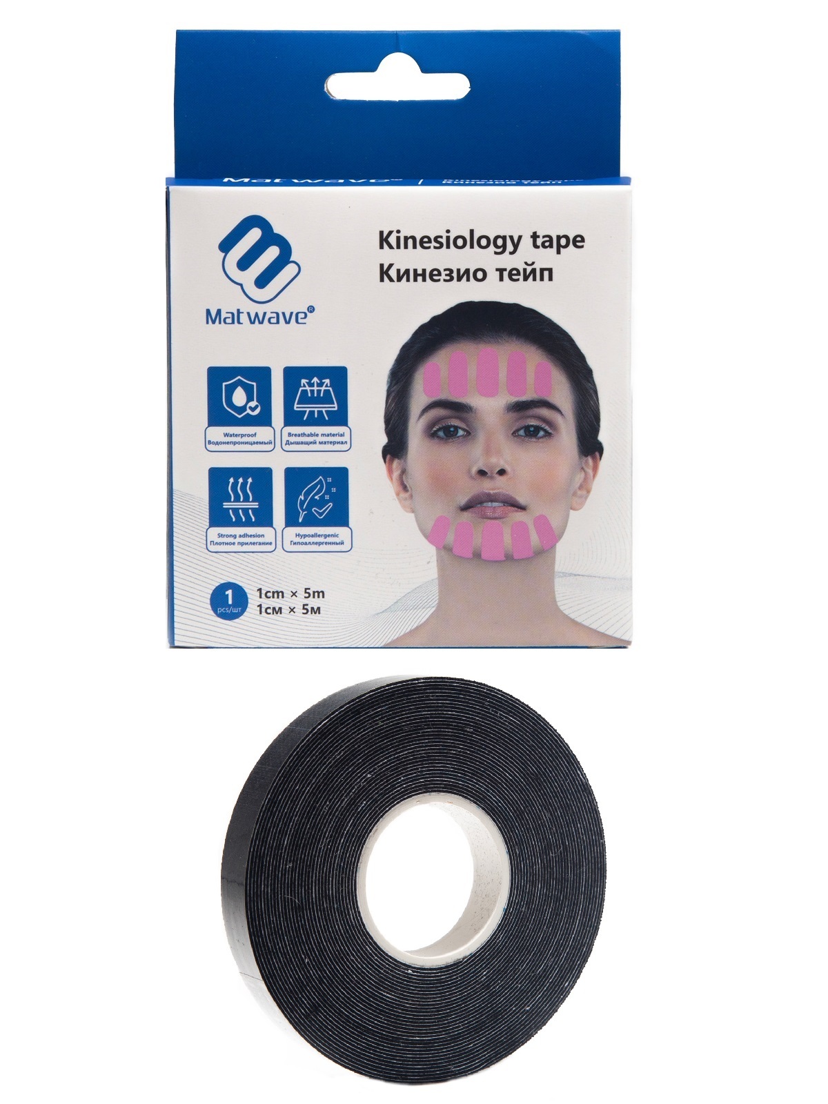 Кинезио тейп для лица Matwave 1см x 5м, черный