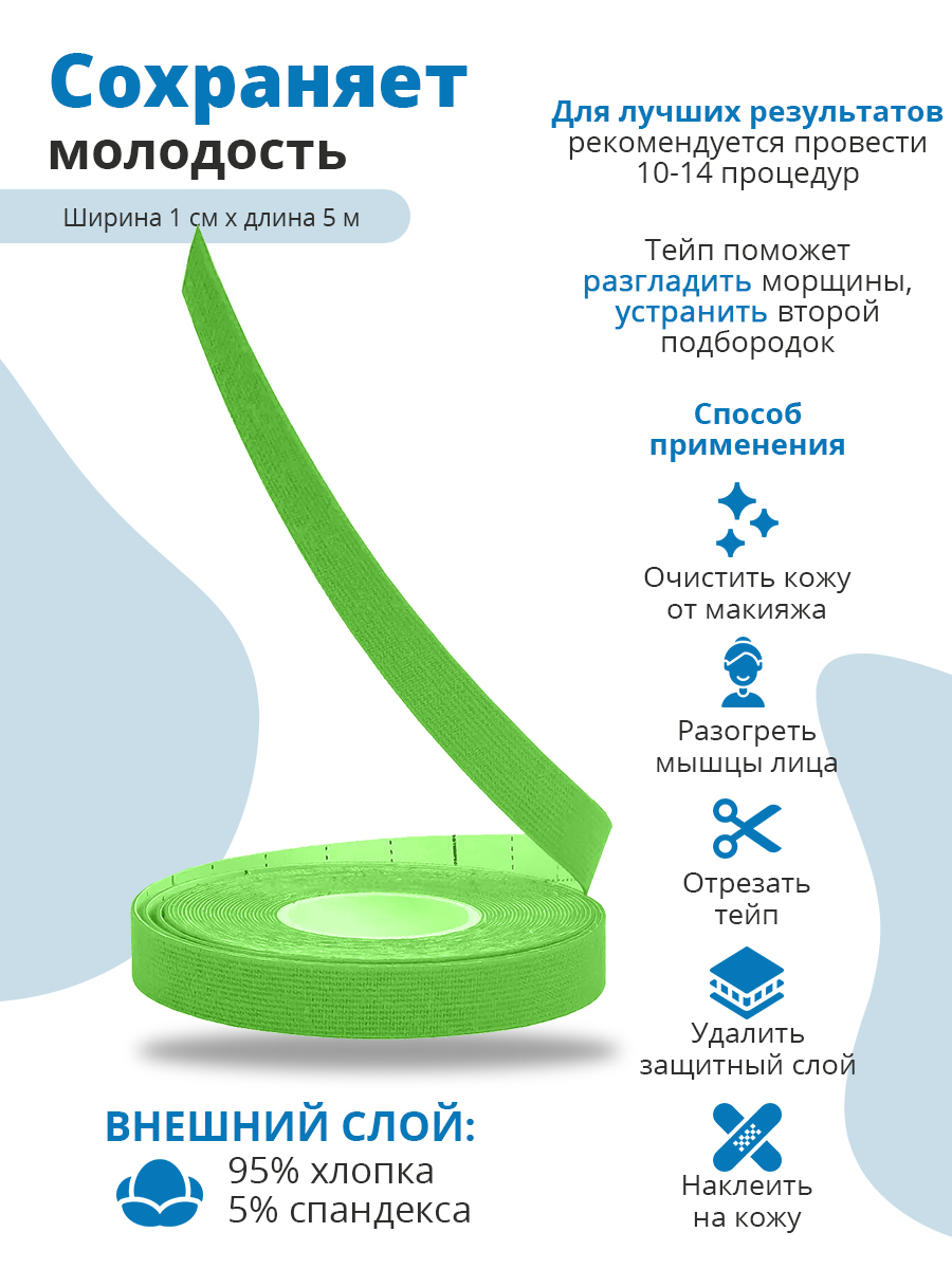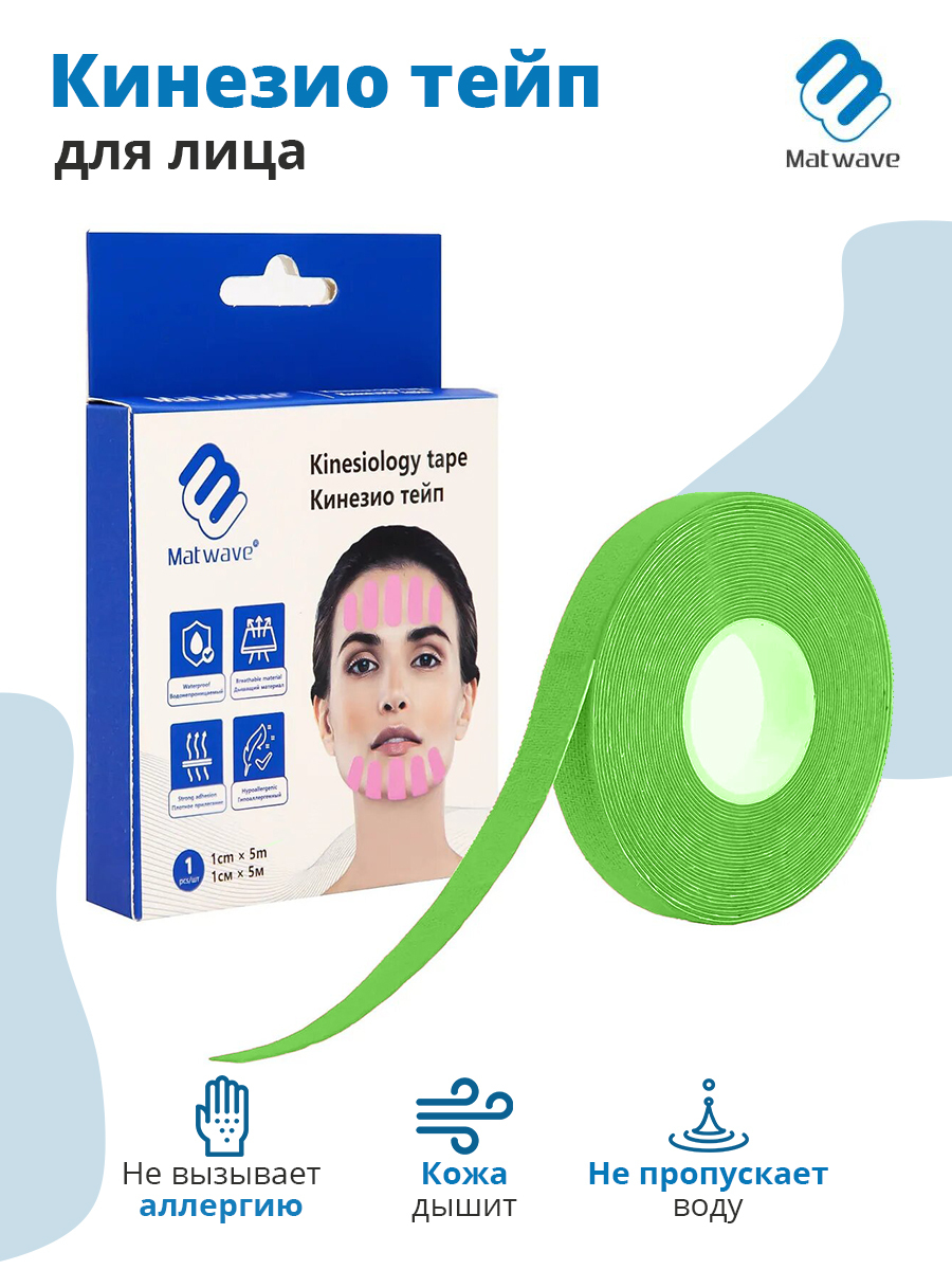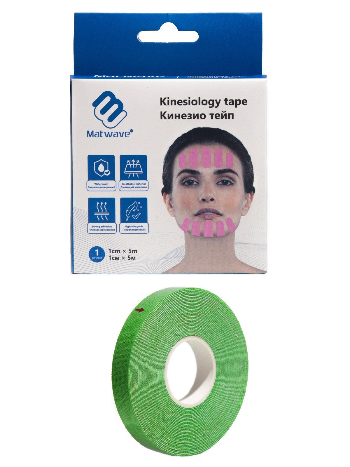 Кинезио тейп для лица Matwave 1см x 5м, зеленый