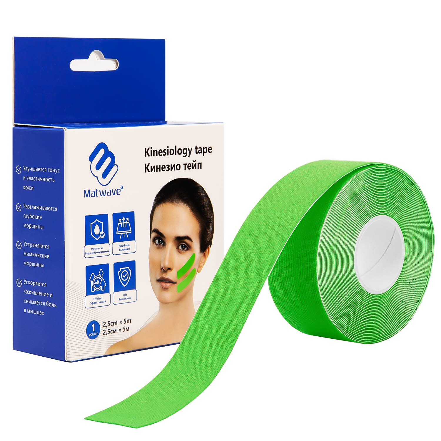Кинезио тейп для лица и рук Matwave 2,5 см х 5 м, зеленый
