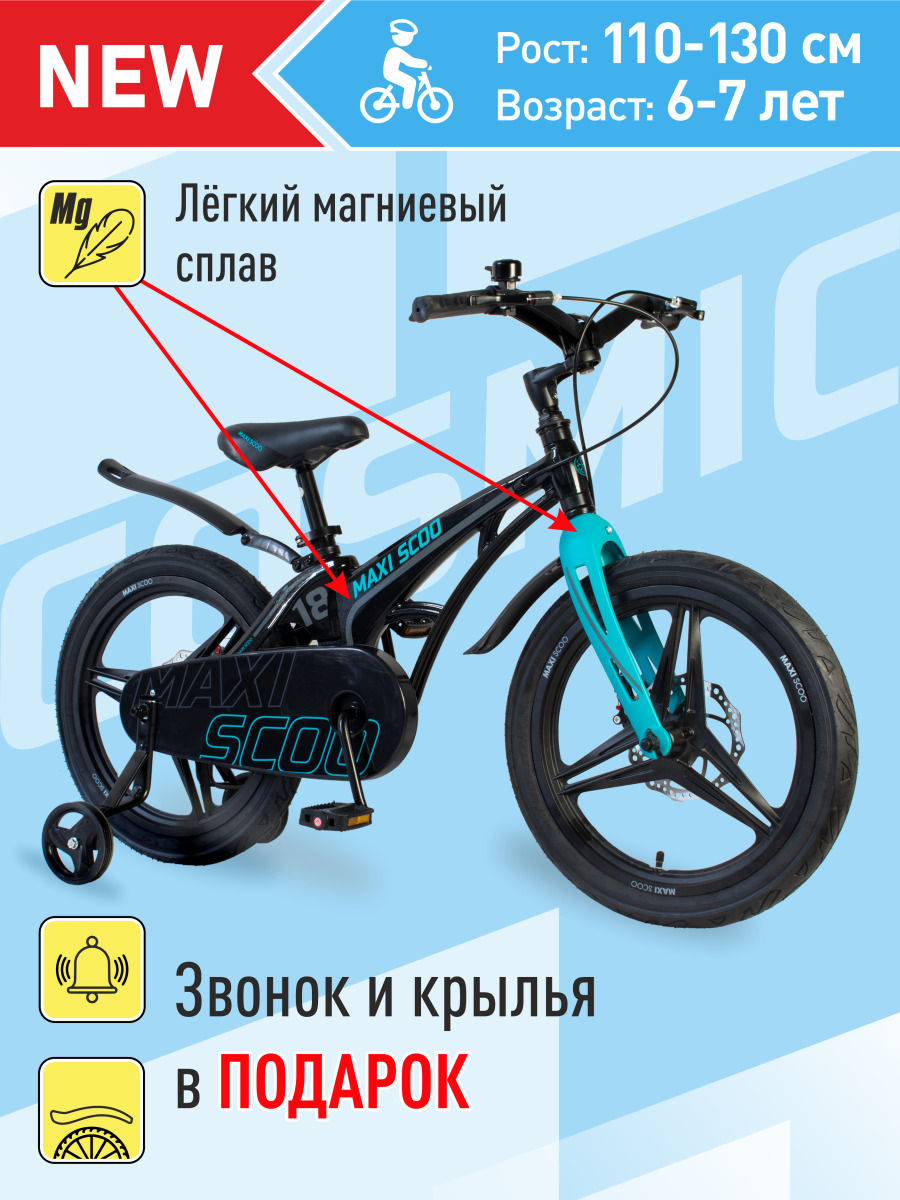 Детский Двухколесный Велосипед MAXISCOO на магниевой раме Cosmic (2022) Делюкс 18 Черный Аметист
