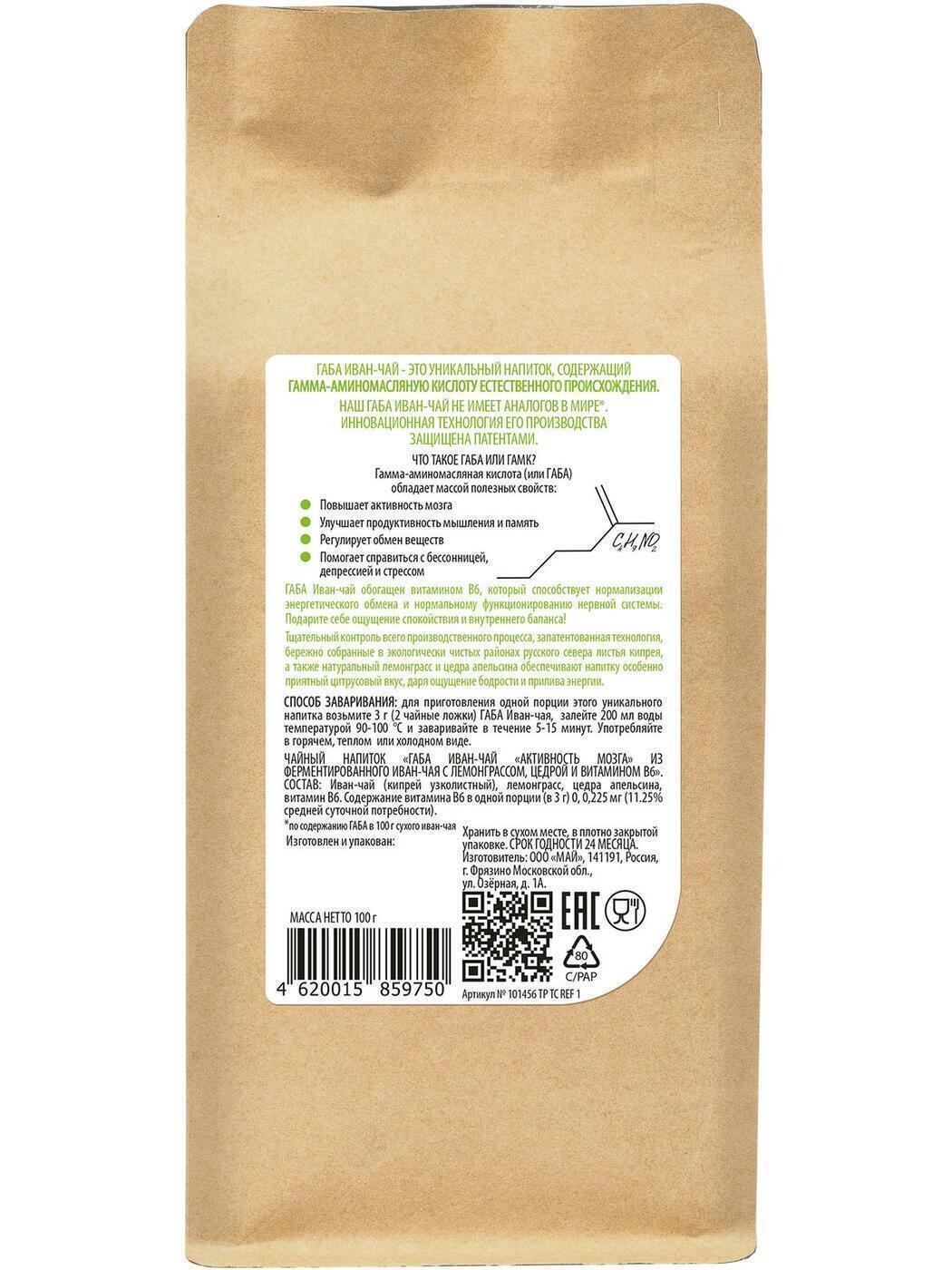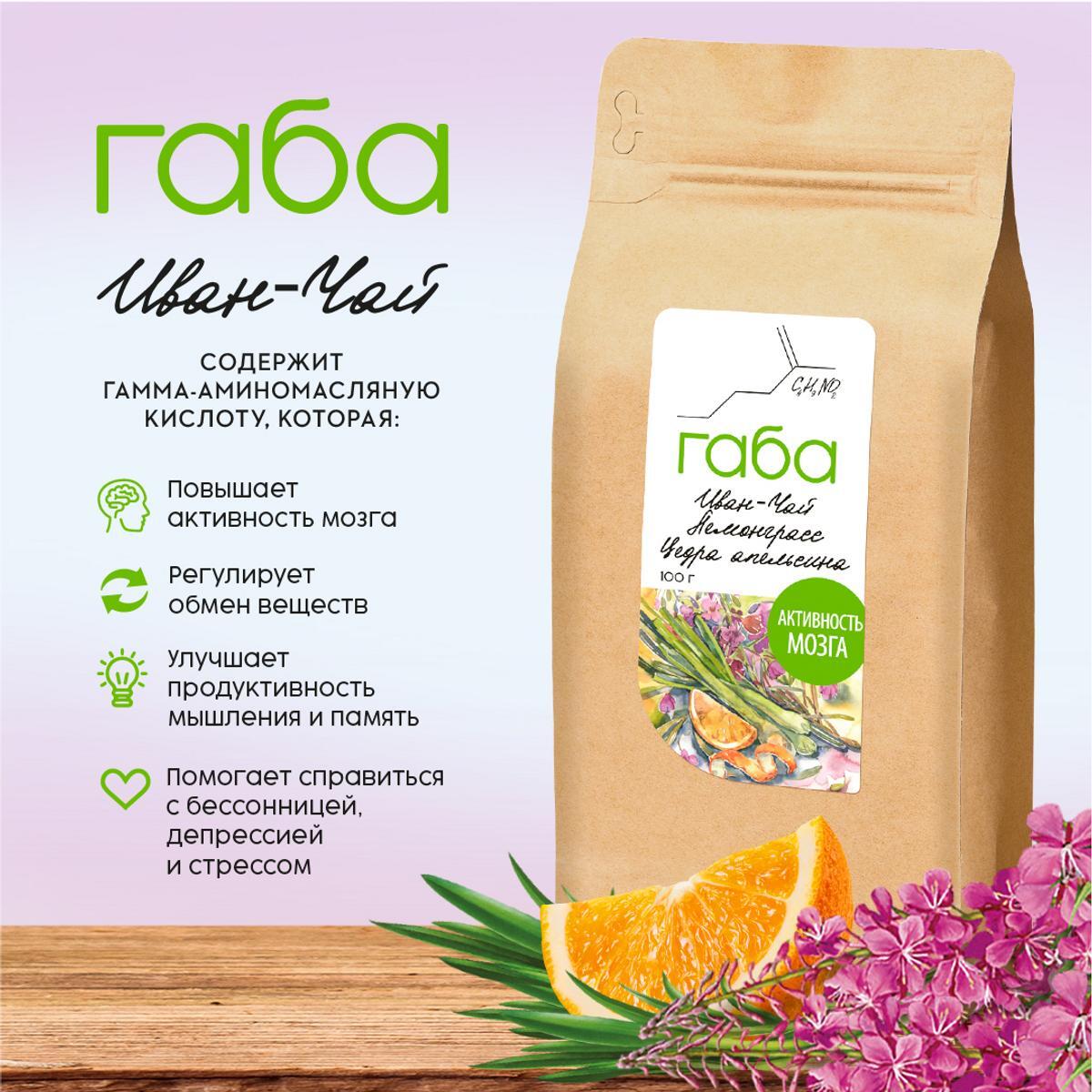 Чайный напиток "ГАБА иван-чай "АКТИВНОСТЬ МОЗГА" 100 г, с лемонграссом и цедрой, травяной, крупнолистовой