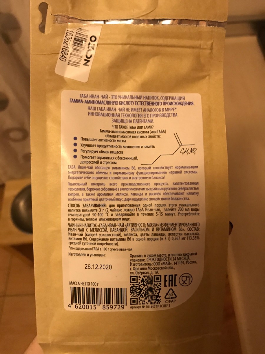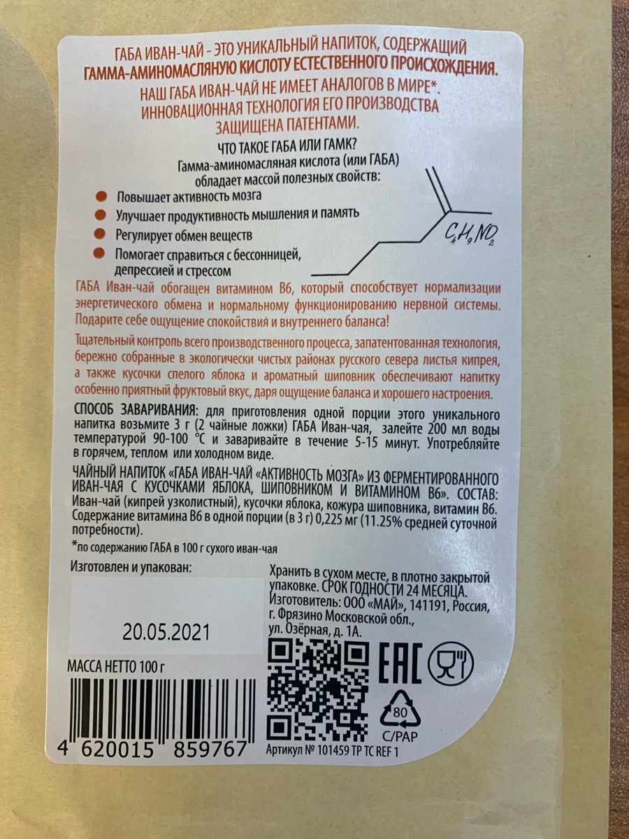Чайный напиток "ГАБА иван-чай "АКТИВНОСТЬ МОЗГА" с ромашкой и мальвой, 100 гр