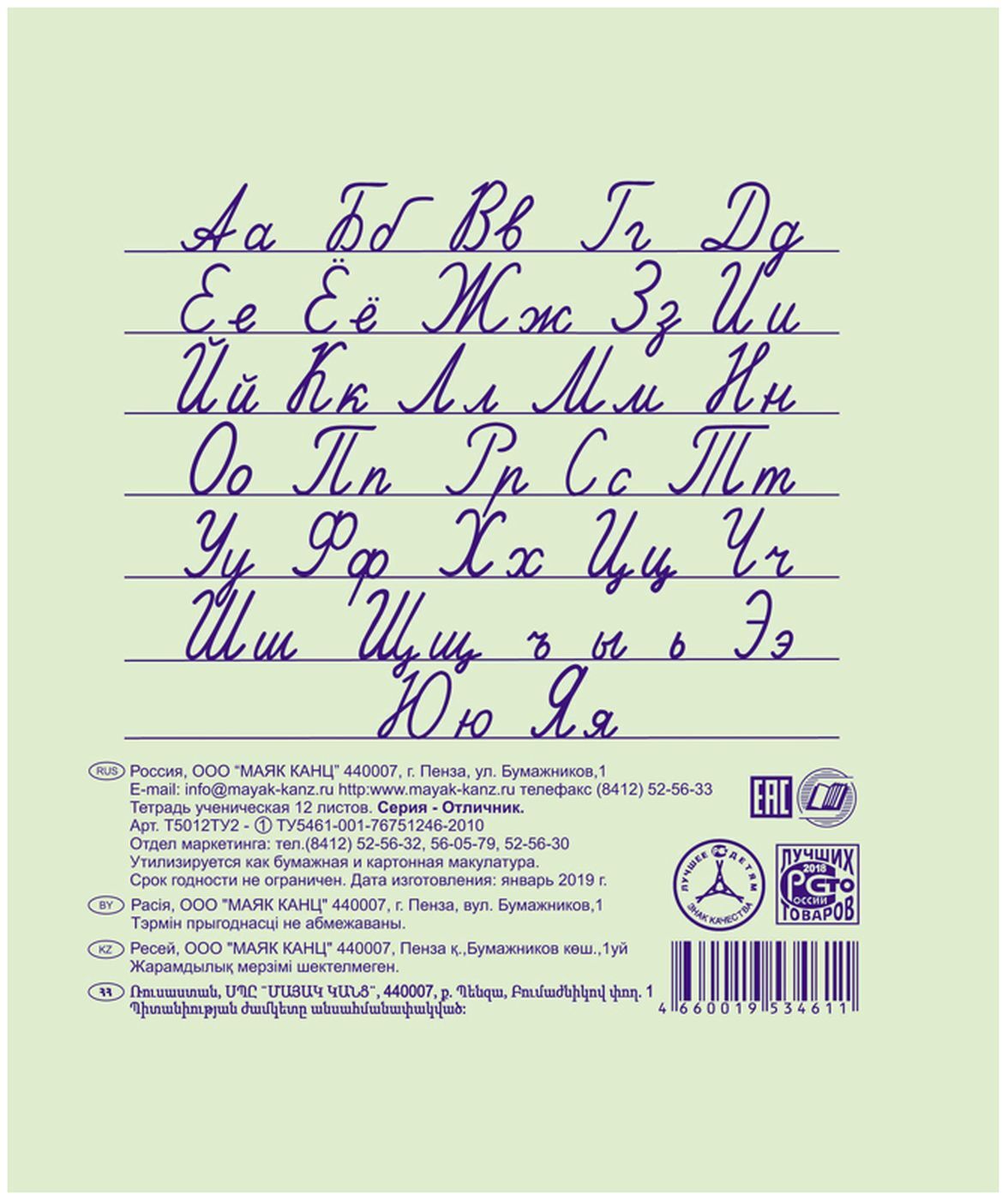 Тетрадь Маяк Отличник, в линейку, Т5012 ТУ2 ЗЕЛ 1Г, зеленый, 12 листов х 20 шт