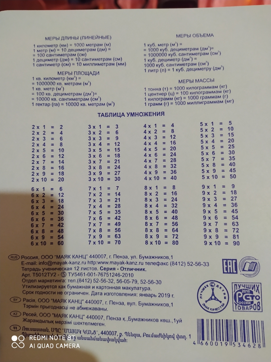 Тетрадь 12 листов в крупную клетку Маяк Канц