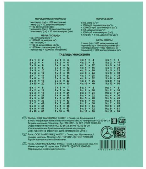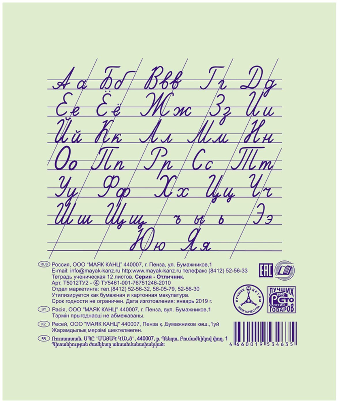 Тетрадь Маяк Отличник, в косую линейку, Т5012 ТУ2 ЗЕЛ 4Г, зеленый, 12 листов х 20 шт