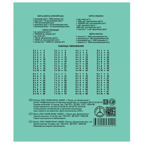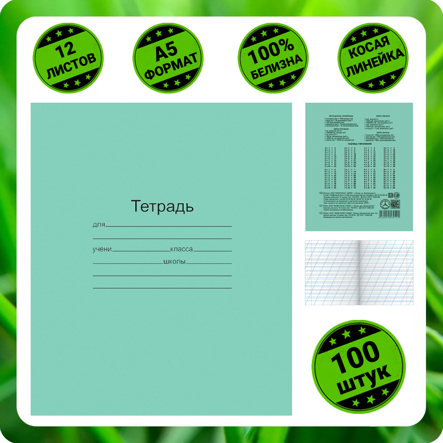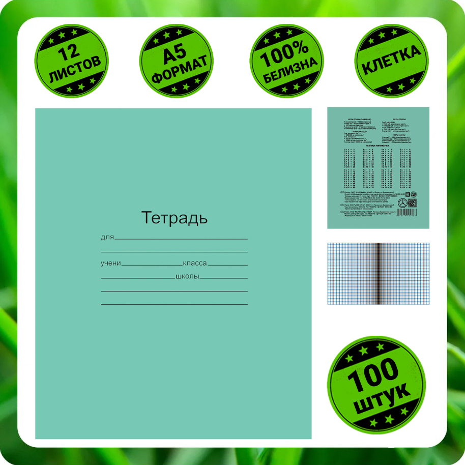 Тетрадь школьная 12 листов, клетка с полями, офсет, "Маяк", комплект 100 штук