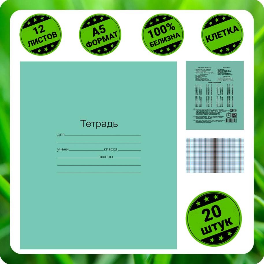 Тетрадь Маяк Отличник, в клетку, Т5012 ТУ2 ЗЕЛ 5Г, зеленый, 12 листов х 20 шт