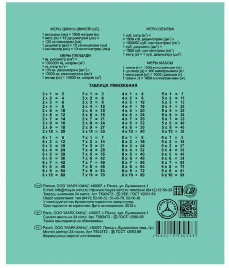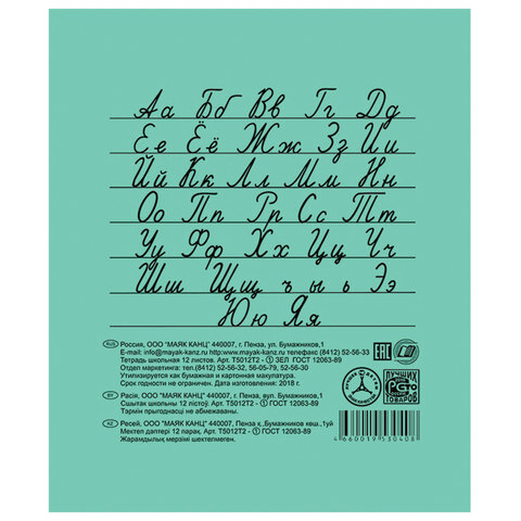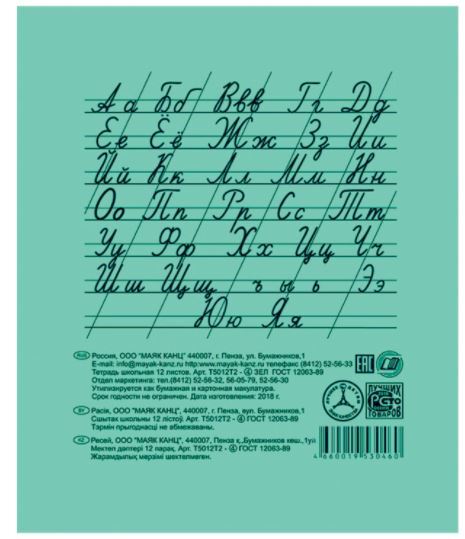 Тетрадь Маяк Отличник, в косую линейку, Т5012 ТУ2 ЗЕЛ 4Г, зеленый, 12 листов х 20 шт