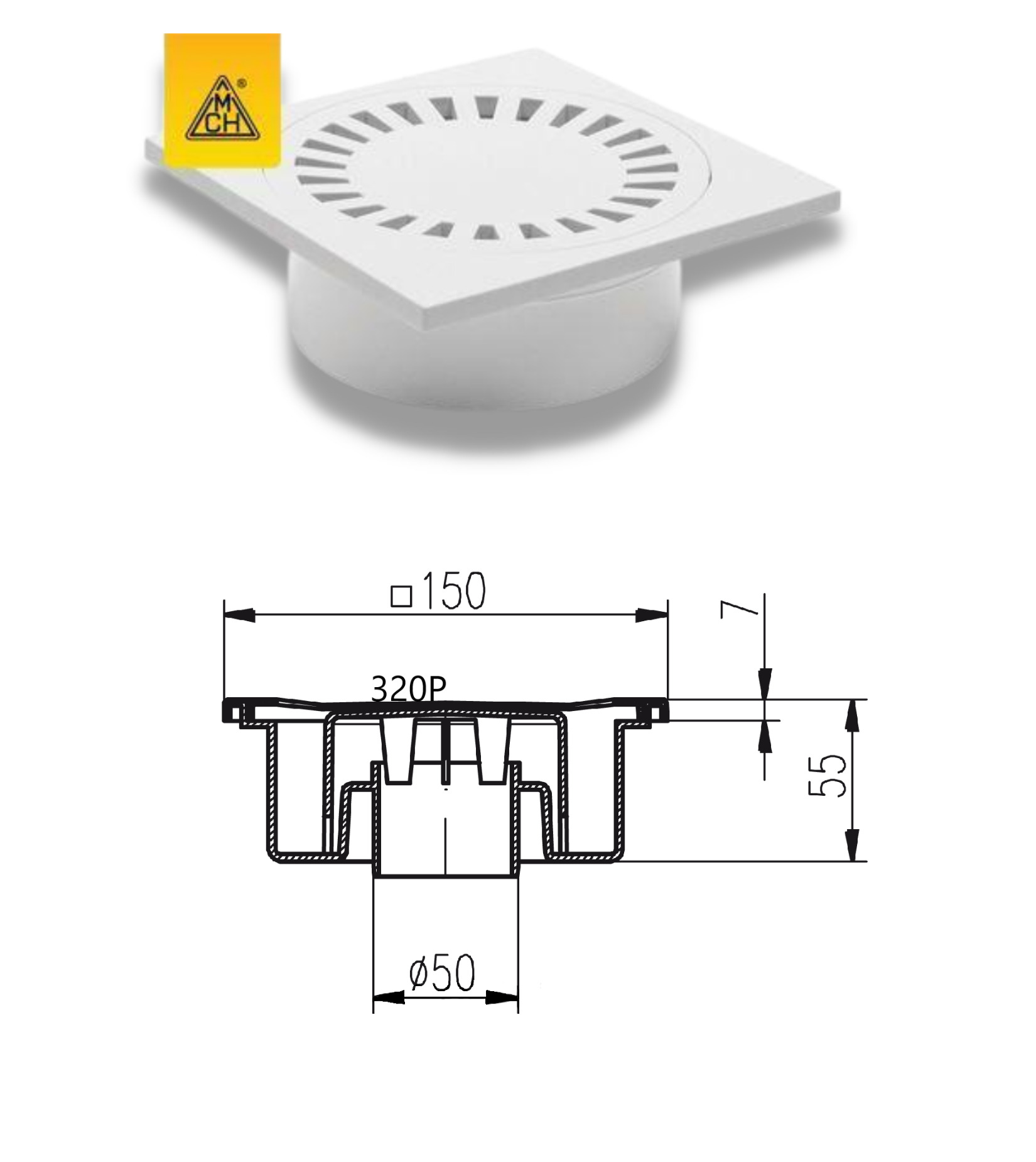 Трап для пола MCH DN50/55 пластик (320P)Производитель Чехия: Chudej 150x150мм