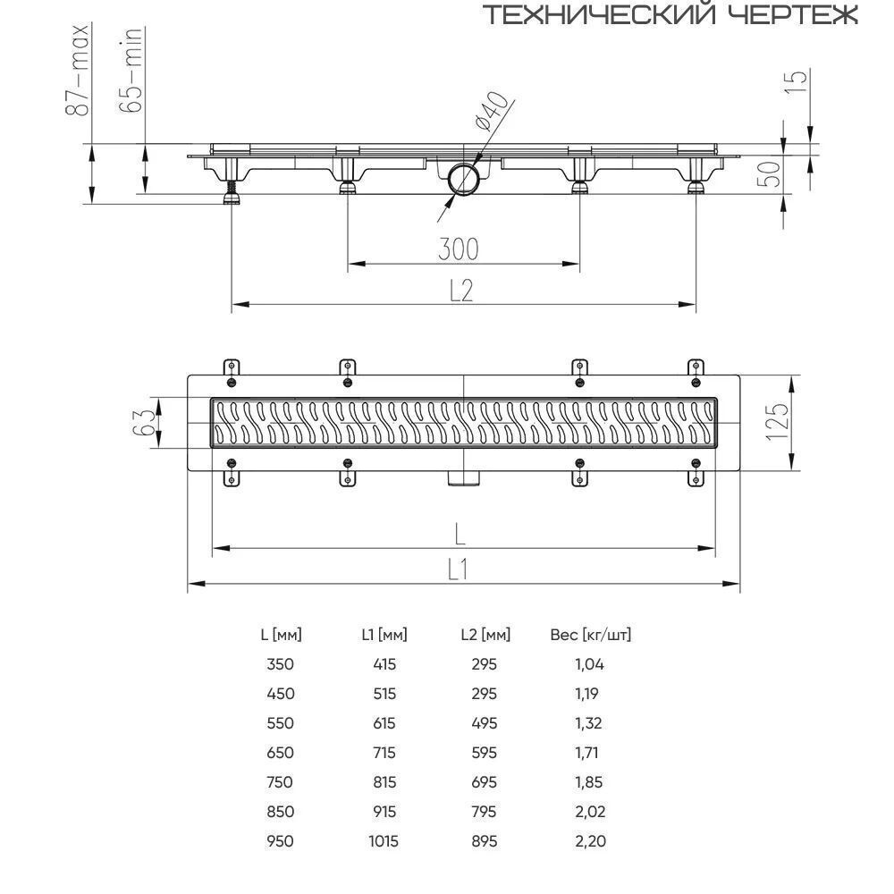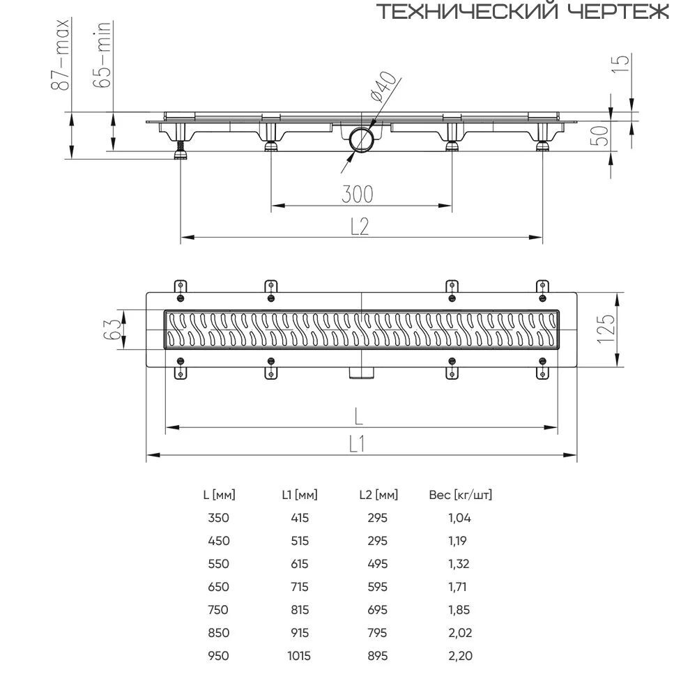Душевой лоток (трап) MCH Medium Black 450 Чехия