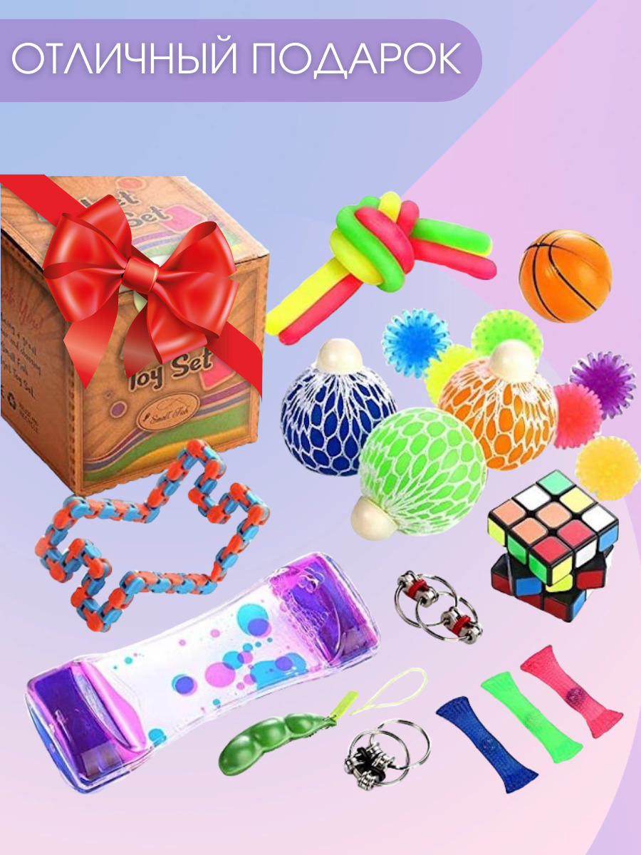 Подарочный набор игрушек антистресс, в наборе 23 сенсорных игрушек