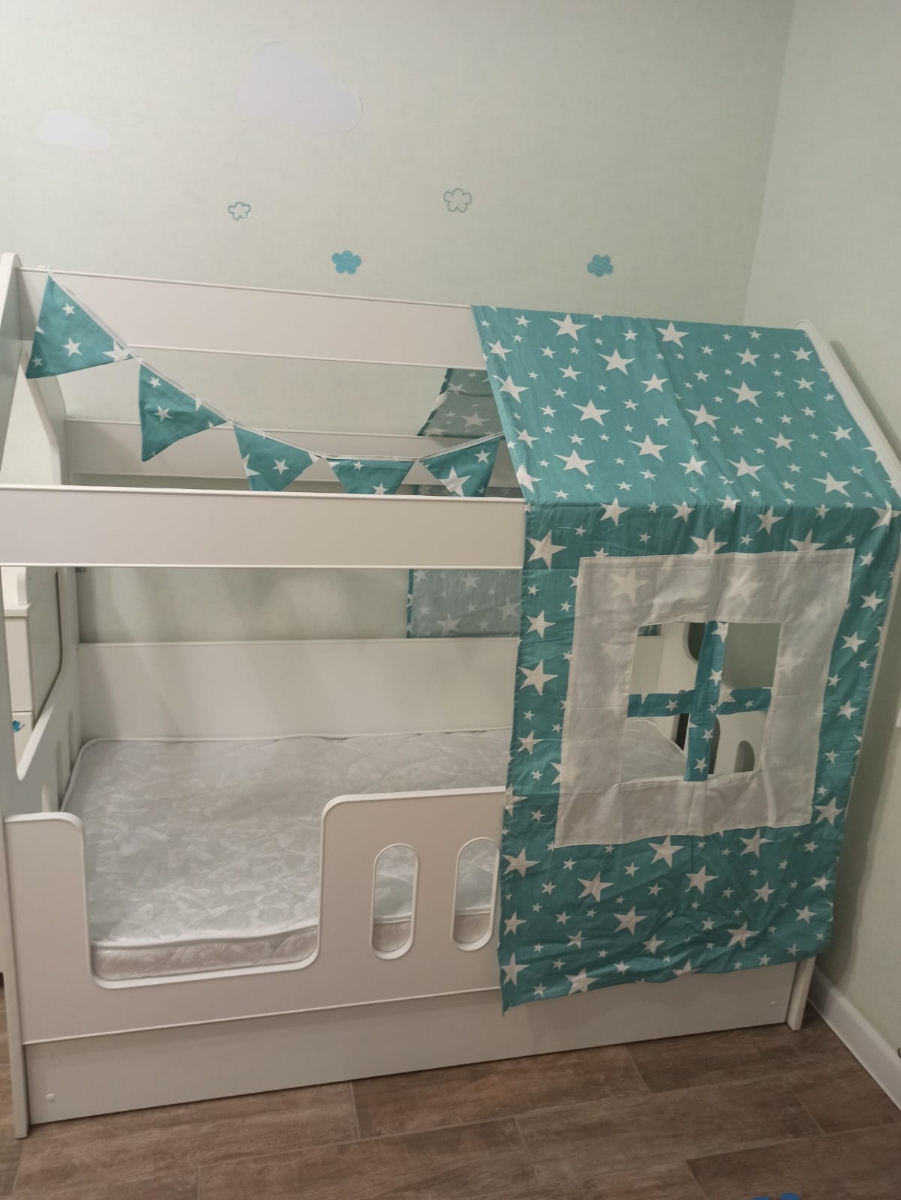 Кровать-домик 85х163.5х155 см, Мебель-Трейд "Облачка с текстилем"