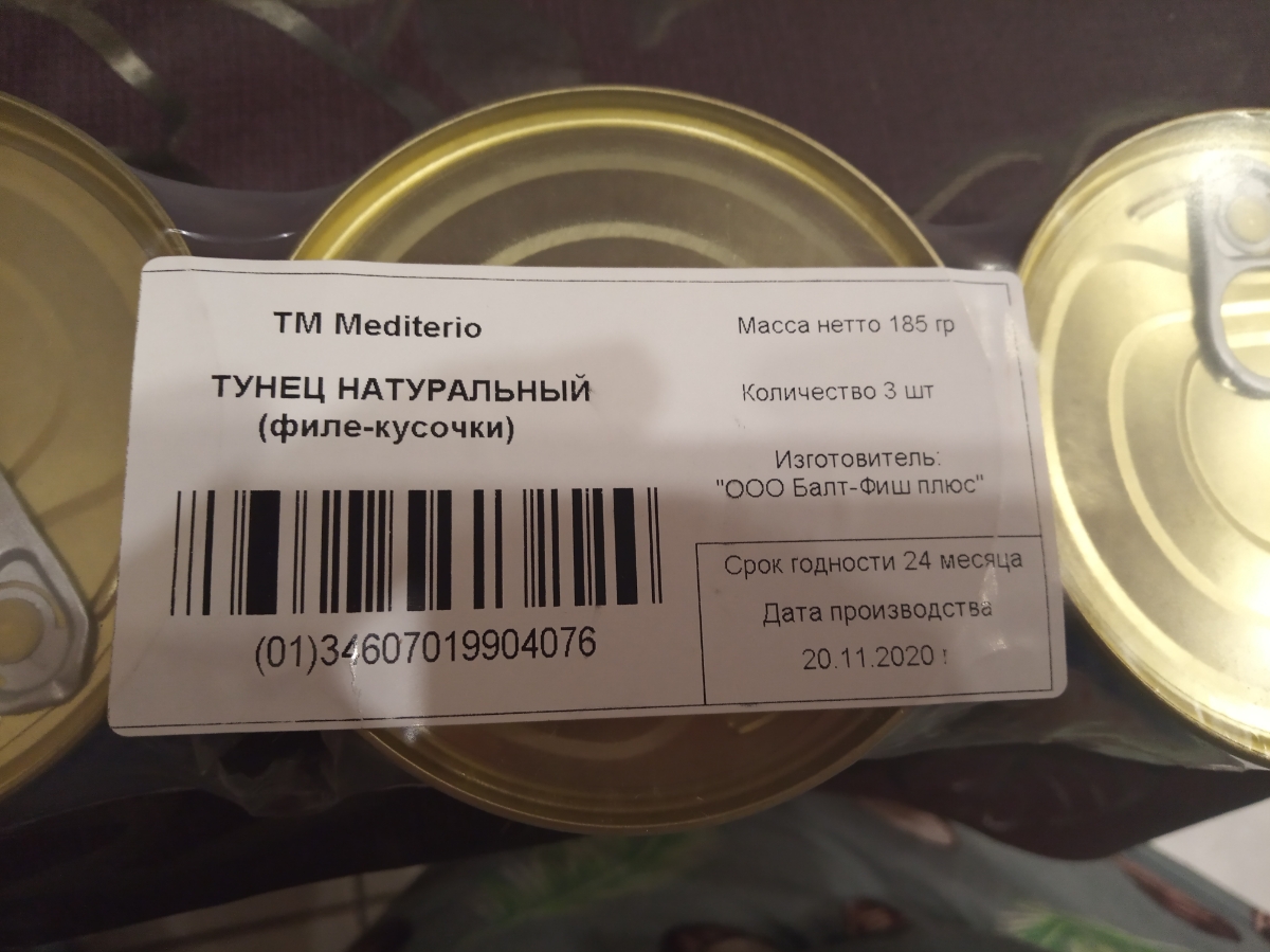 Тунец филе "Mediterio" натуральный 185гр, 3 шт. в упаковке