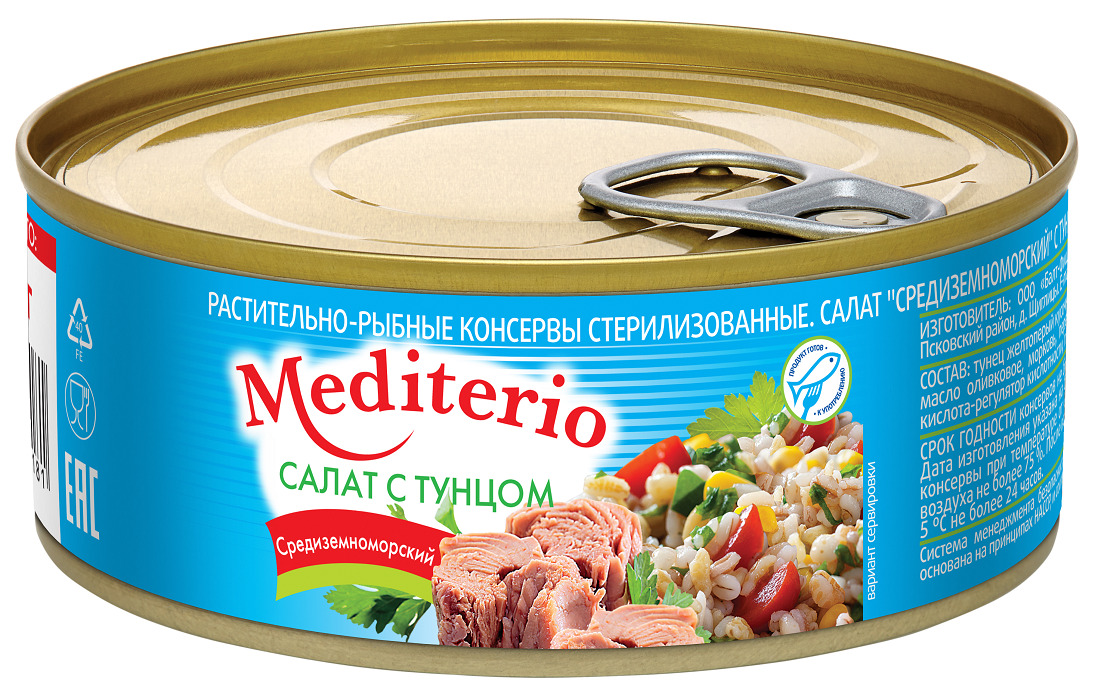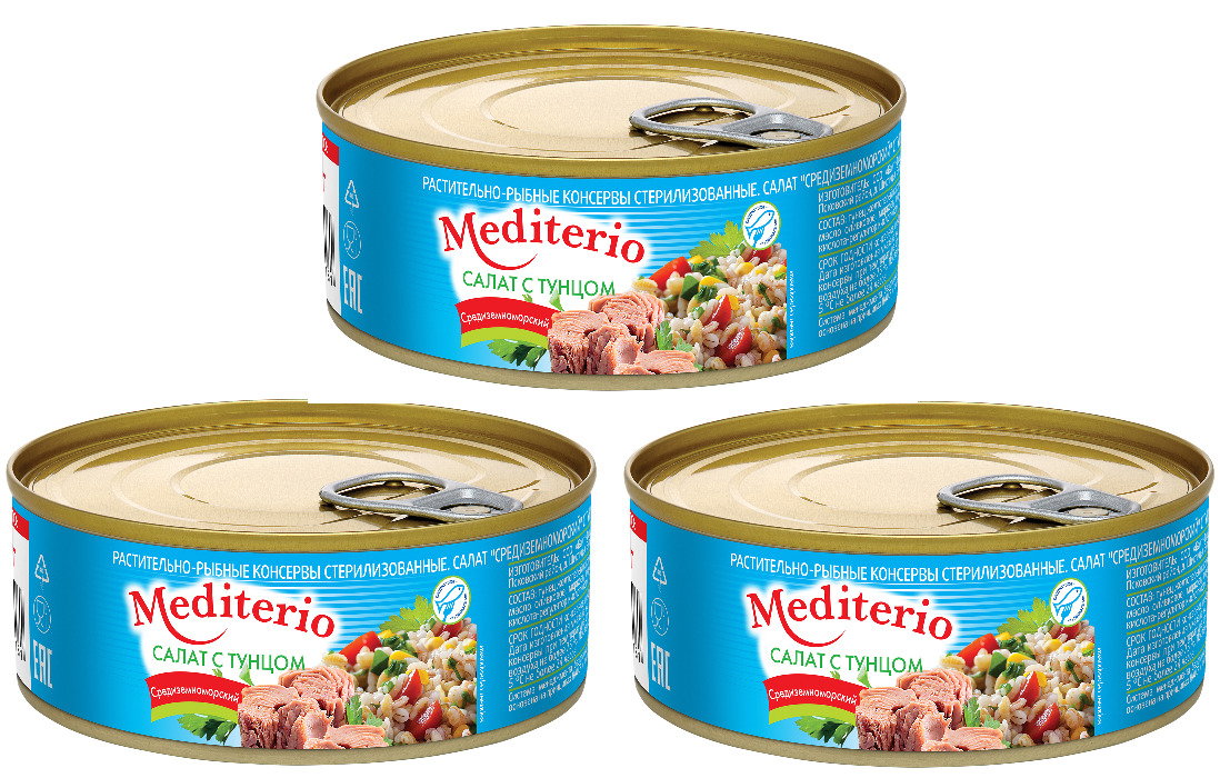 Салат с тунцом "Mediterio" Средиземноморский 240гр, 3 шт. в упаковке