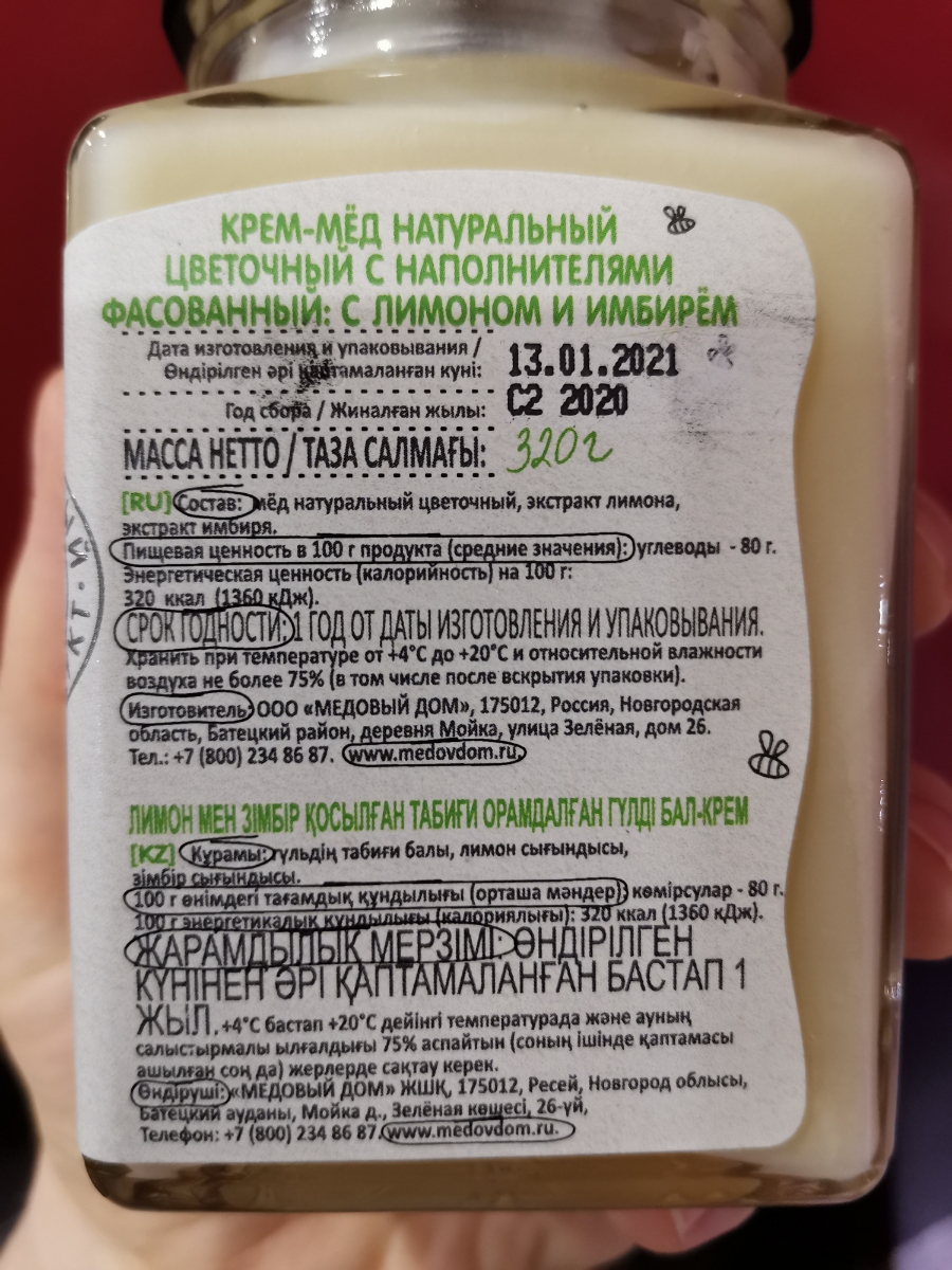 Крем-мёд Медовый Дом натуральный цветочный с имбирем и лимоном, 320г