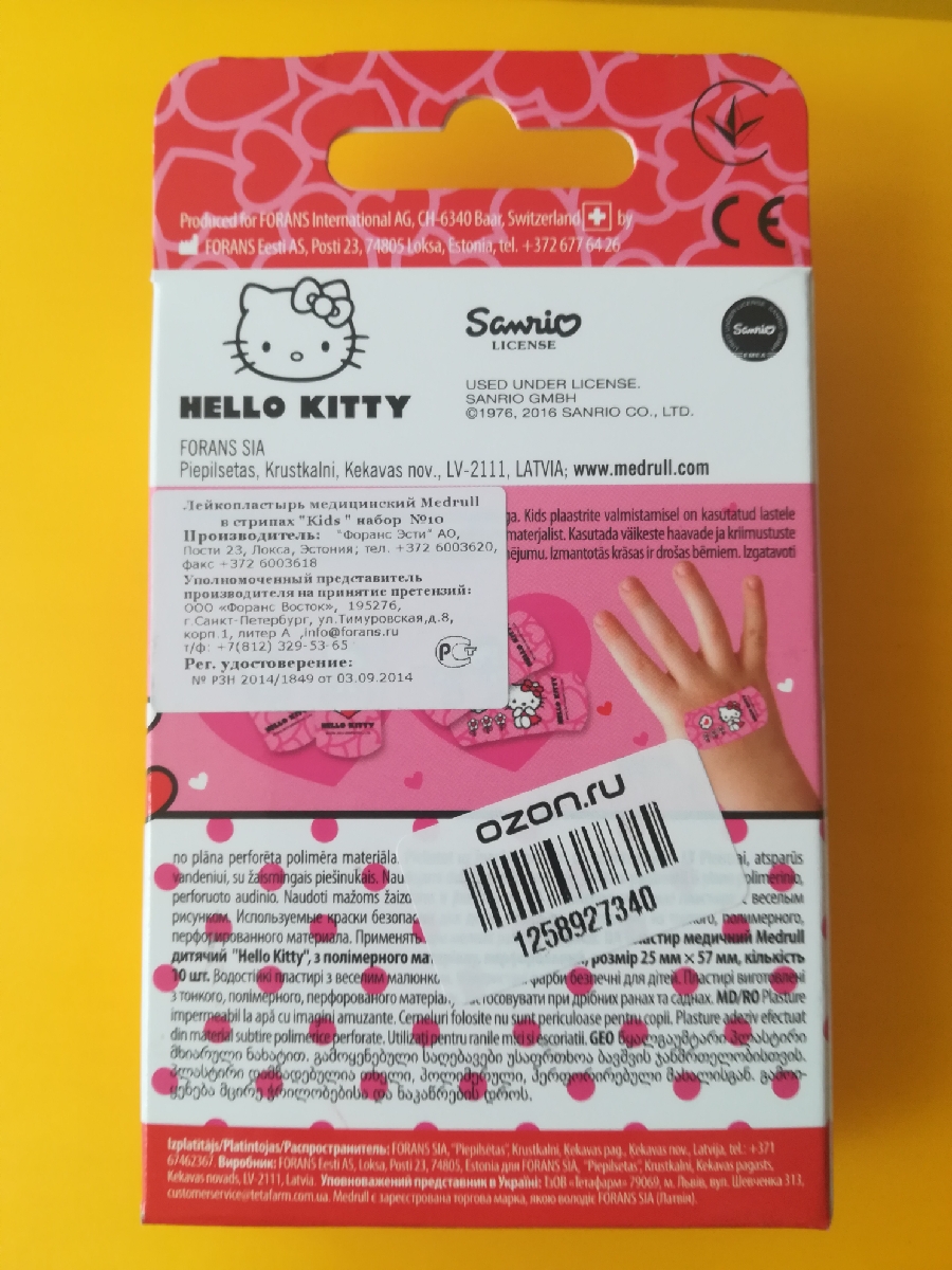 Medrull Лейкопластырь медицинский детский в стрипах Hello Kitty 10 шт