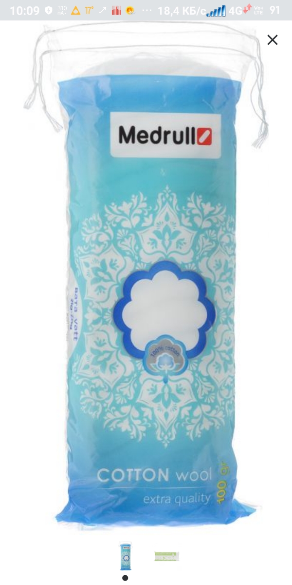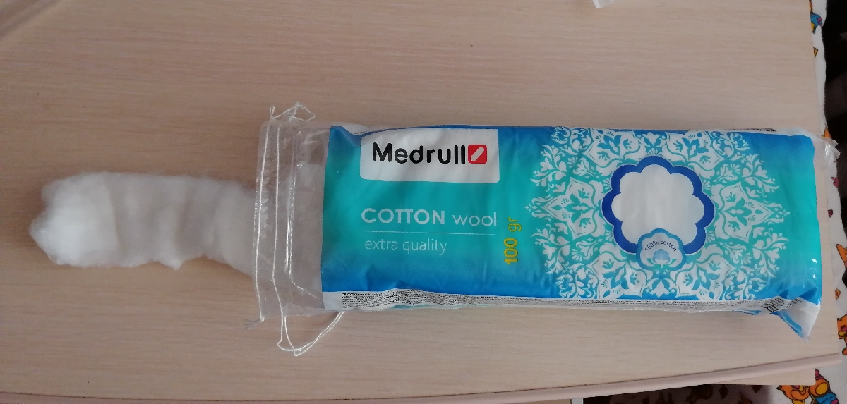 Medrull Вата медицинская гигроскопическая хирургическая хлопковая, нестерильная, зиг-заг, 100 г