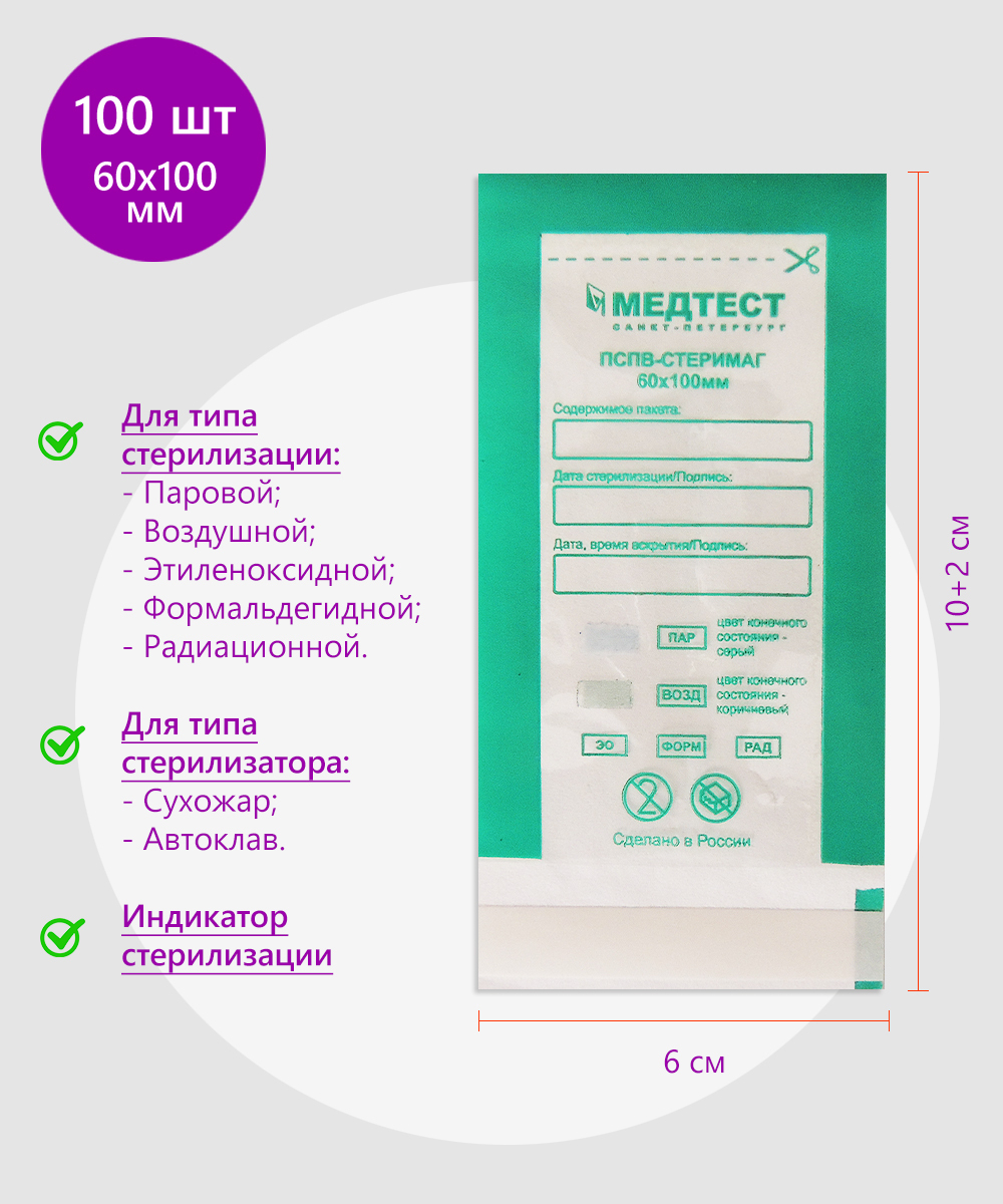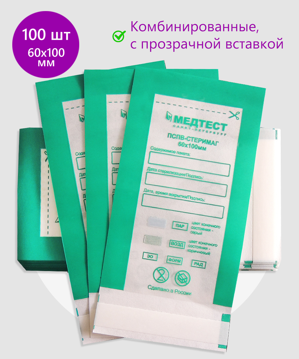 Медтест Крафт-пакеты для стерилизации, комбинированные, 60х100 мм, 100 шт