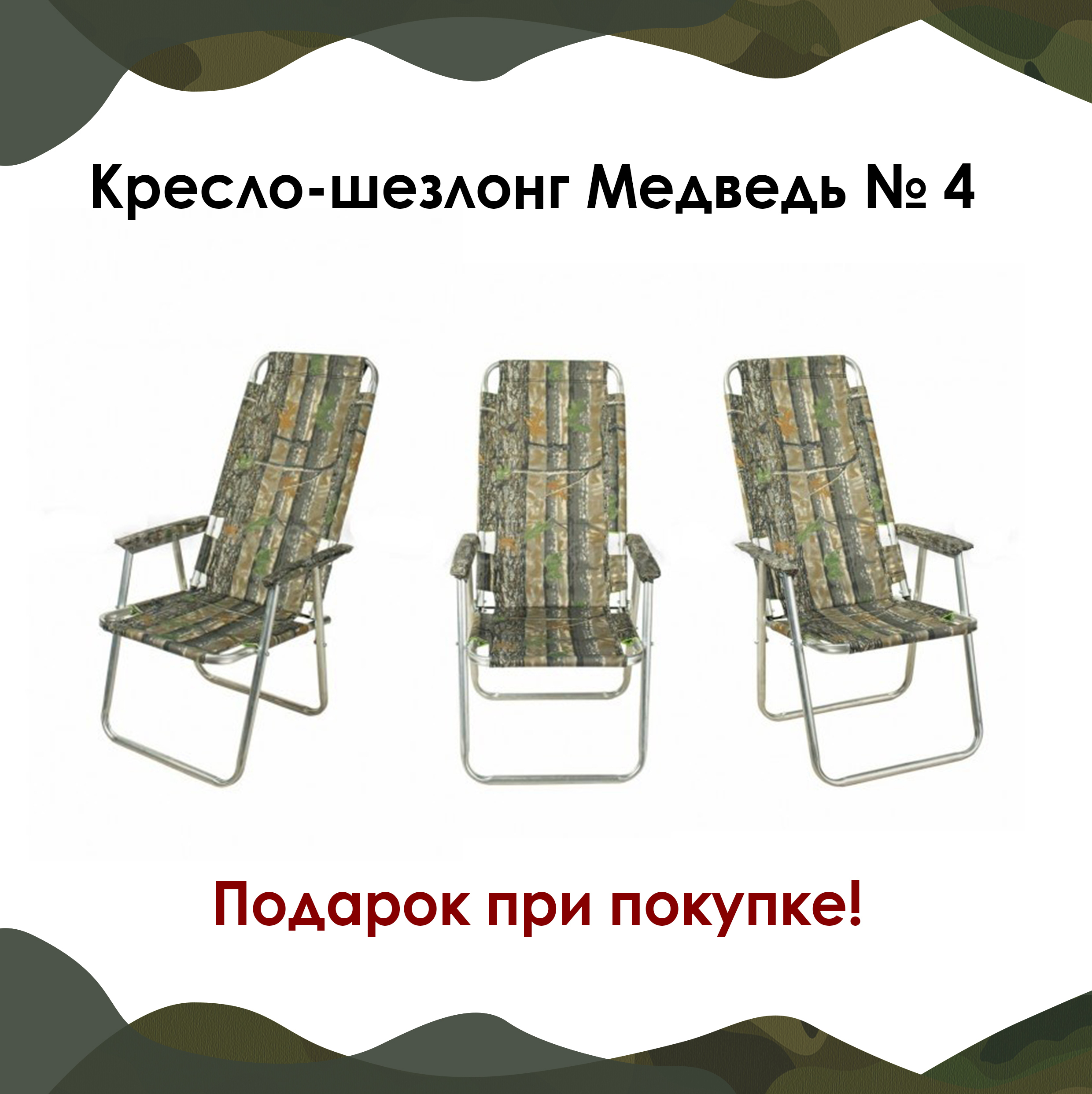 Кресло шезлонг алюминиевое №4 Медведь туристическое с подголовником
