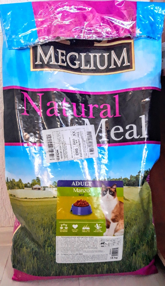 Корм сухой Meglium Adult для кошек, с говядиной, 15 кг