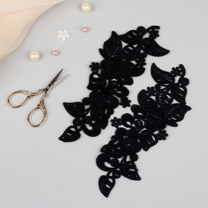 Аппликации пришивные Лейсы, 24 * 9 см, пара, цвет чёрный