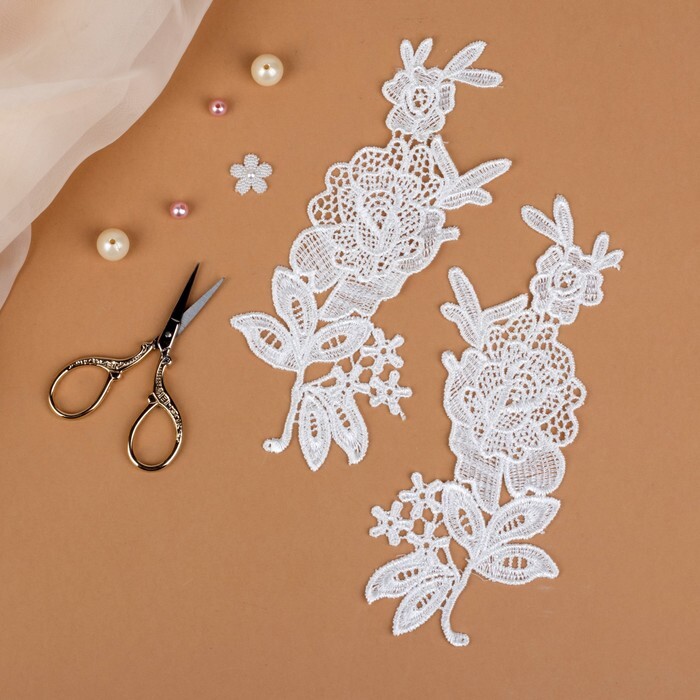 Аппликации пришивные Лейсы, 19,2 * 8 см, пара, цвет белый