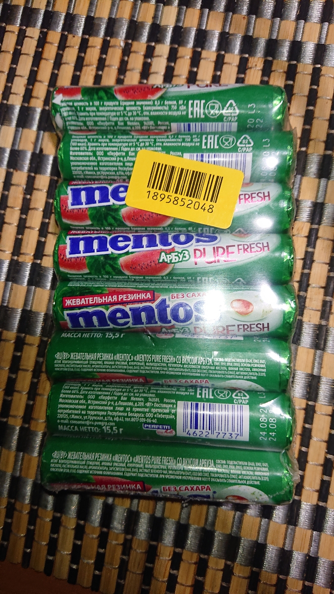 Жевательная резинка Mentos Pure Fresh вкус Арбуз, 8 шт по 15,5 г