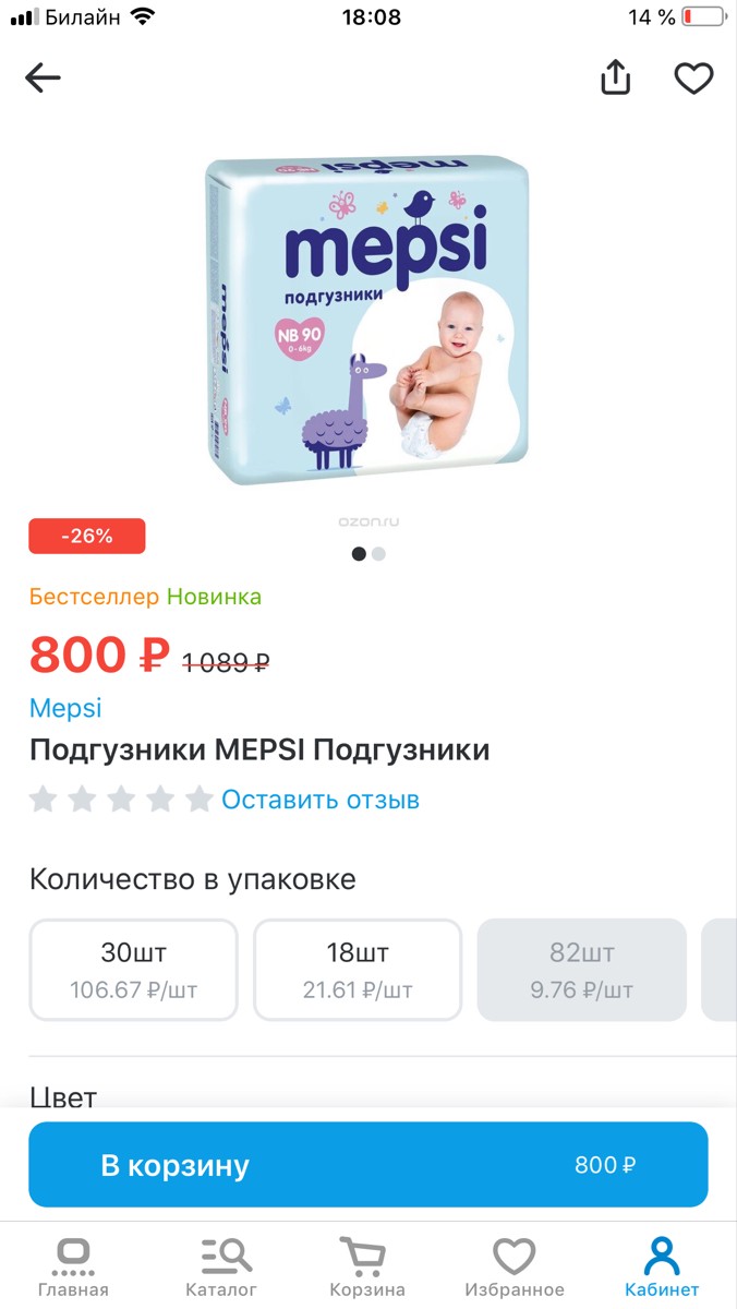 Подгузники Mepsi детские, NB (до 6кг), 30 шт.