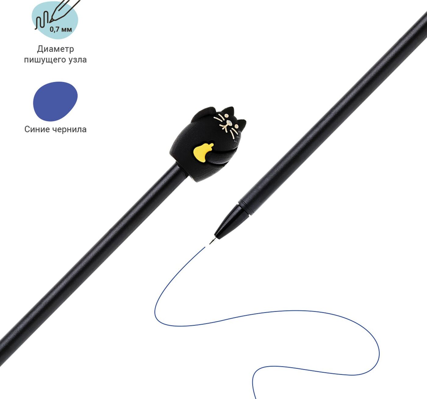 Ручка шариковая Meshu Black Cat синяя, 0,7 мм, корпус чёрный