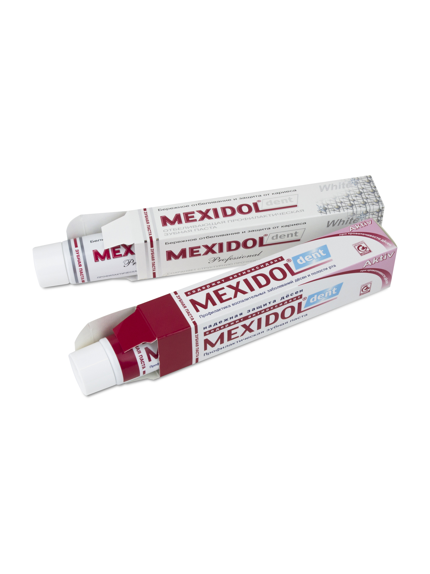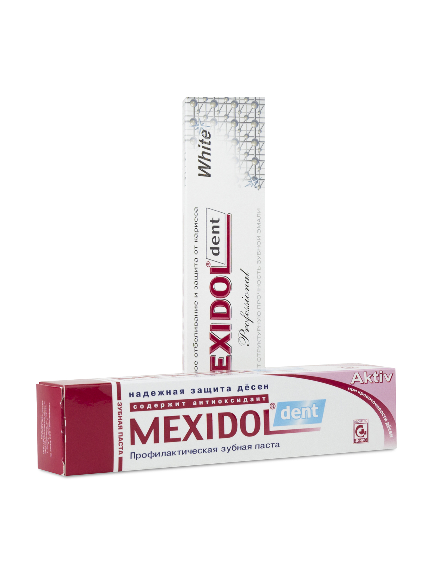 Набор зубных паст "MEXIDOL Dent" (Мексидол дент) Professional White 65 гр + Aktiv 65 гр