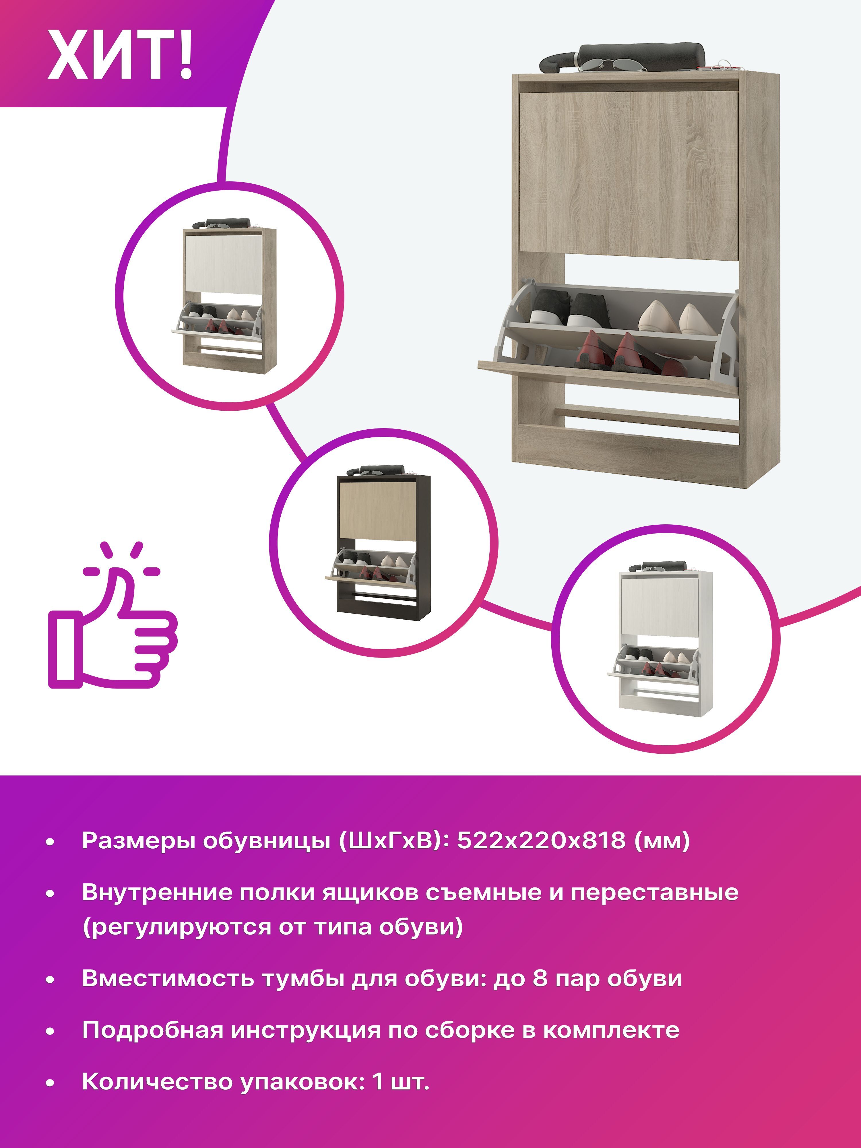 Обувница Uno-51, ЛДСП, 52.2х22х82 см