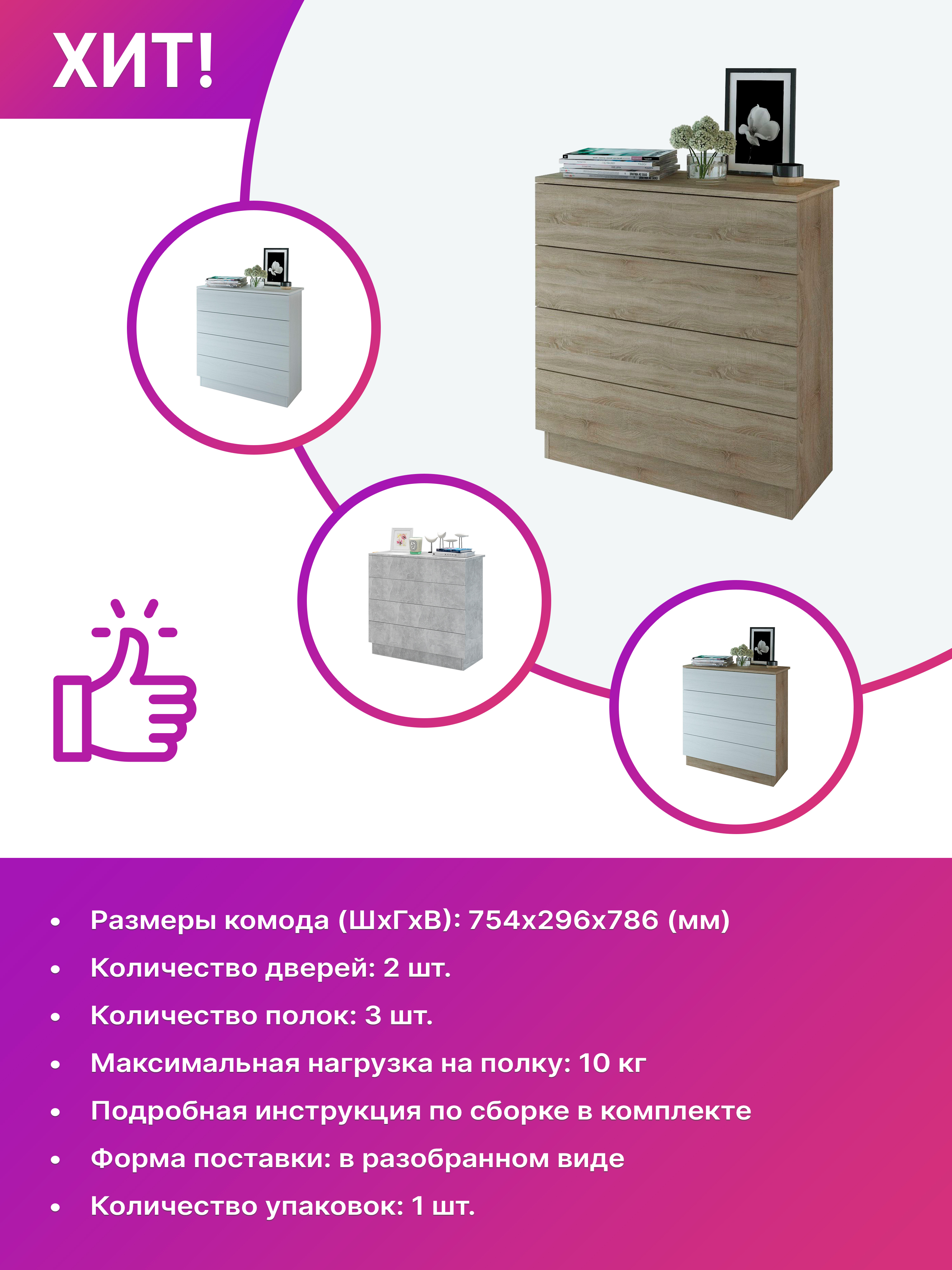 Комод Uno-26, 4 ящ., 77.8х32.2x79.4 см, MFMaster