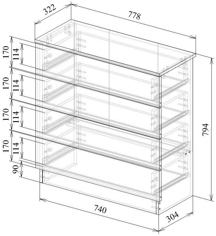 Комод Uno-29, 4 ящ., 62х33x80 см, MFMaster