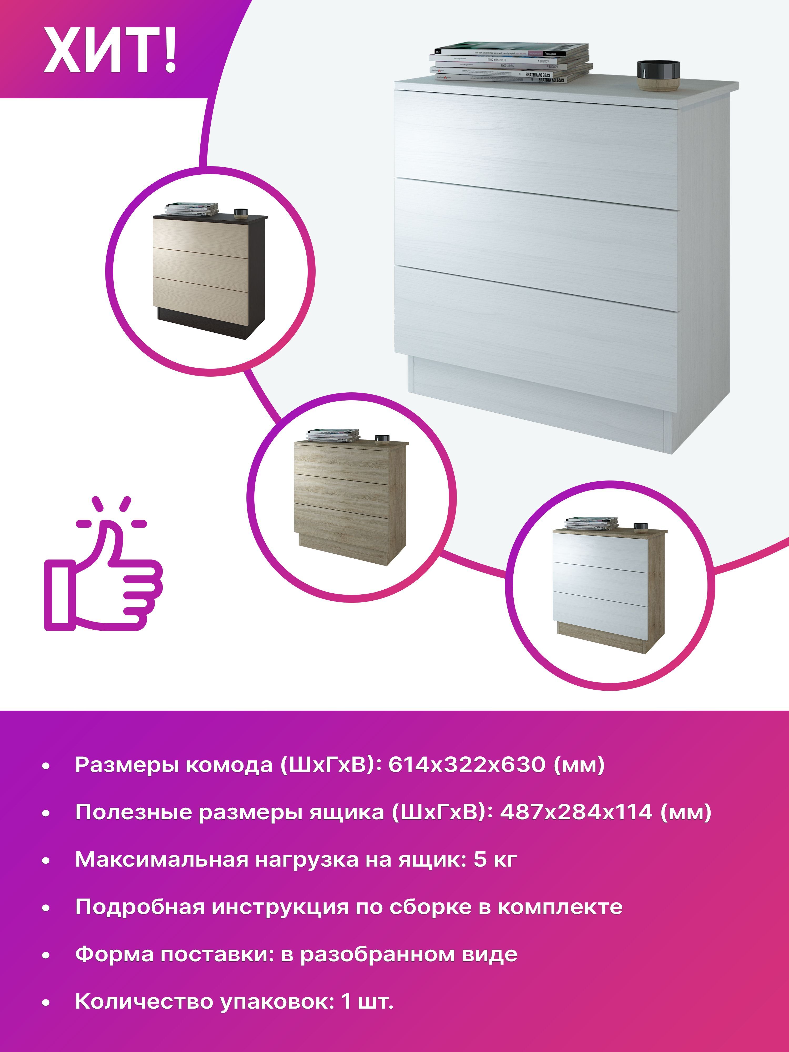 Комод Uno-25, 3 ящ., 61.4х32.2x63 см, MFMaster