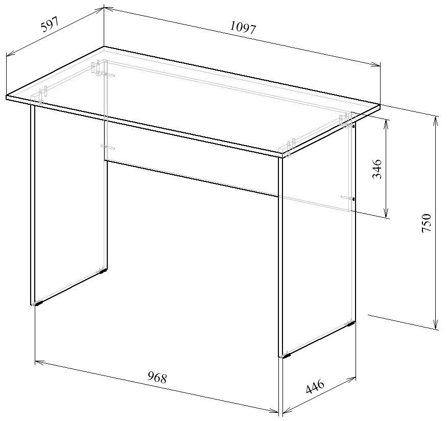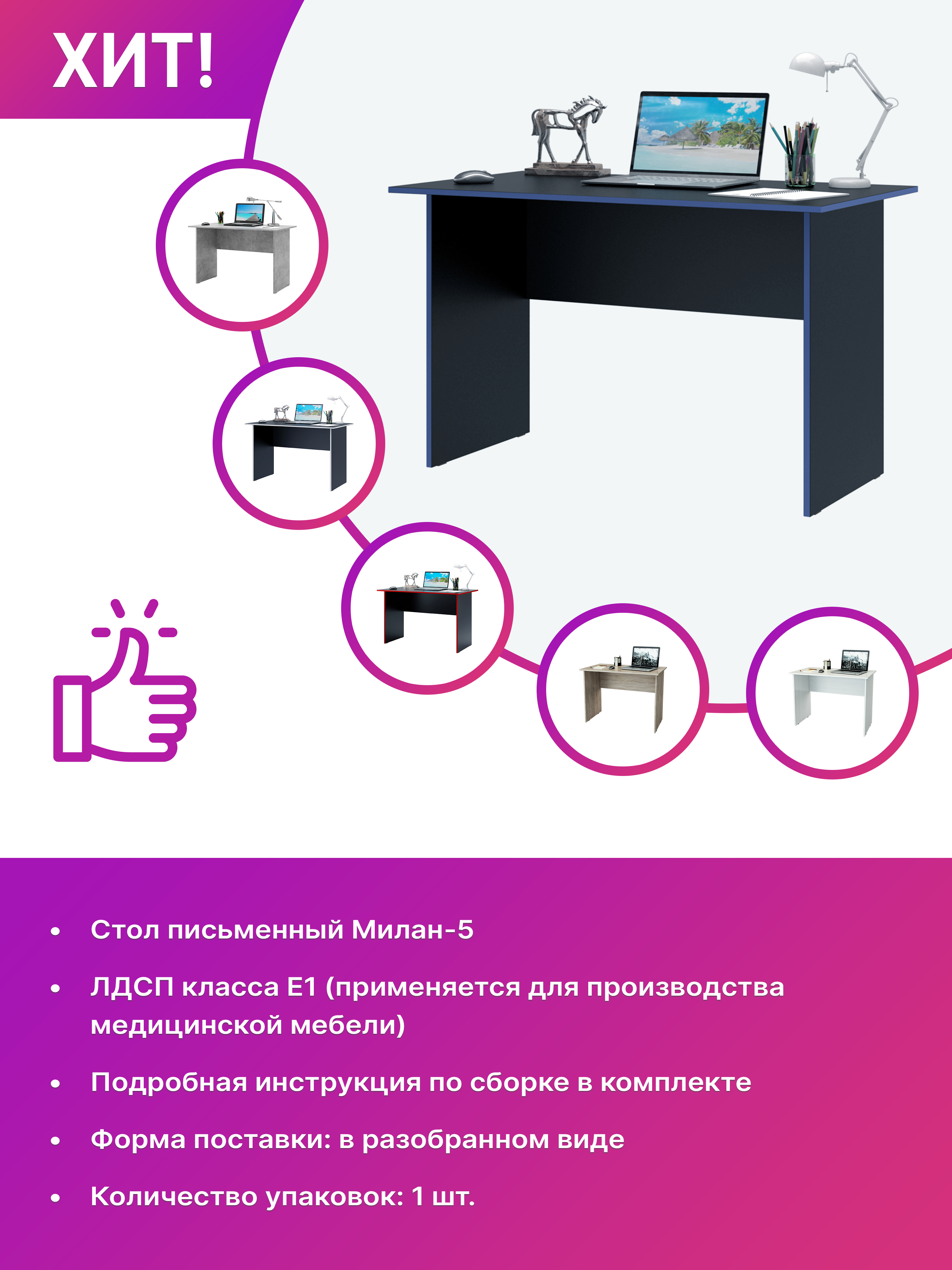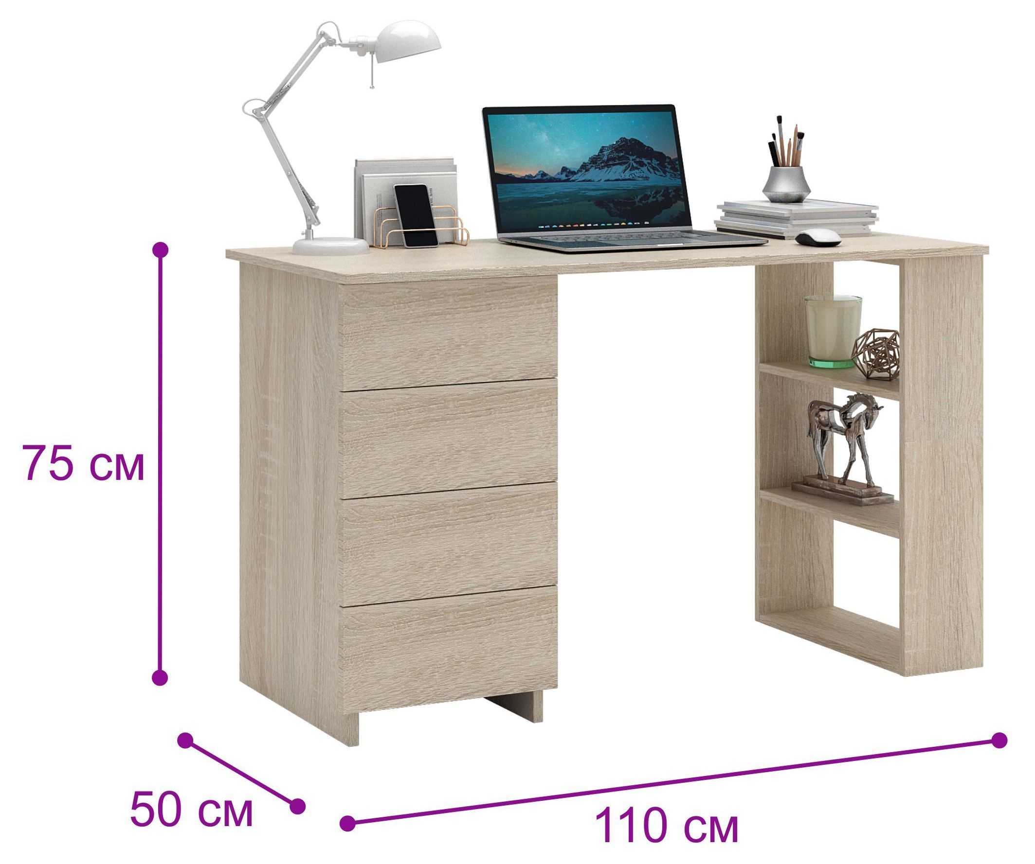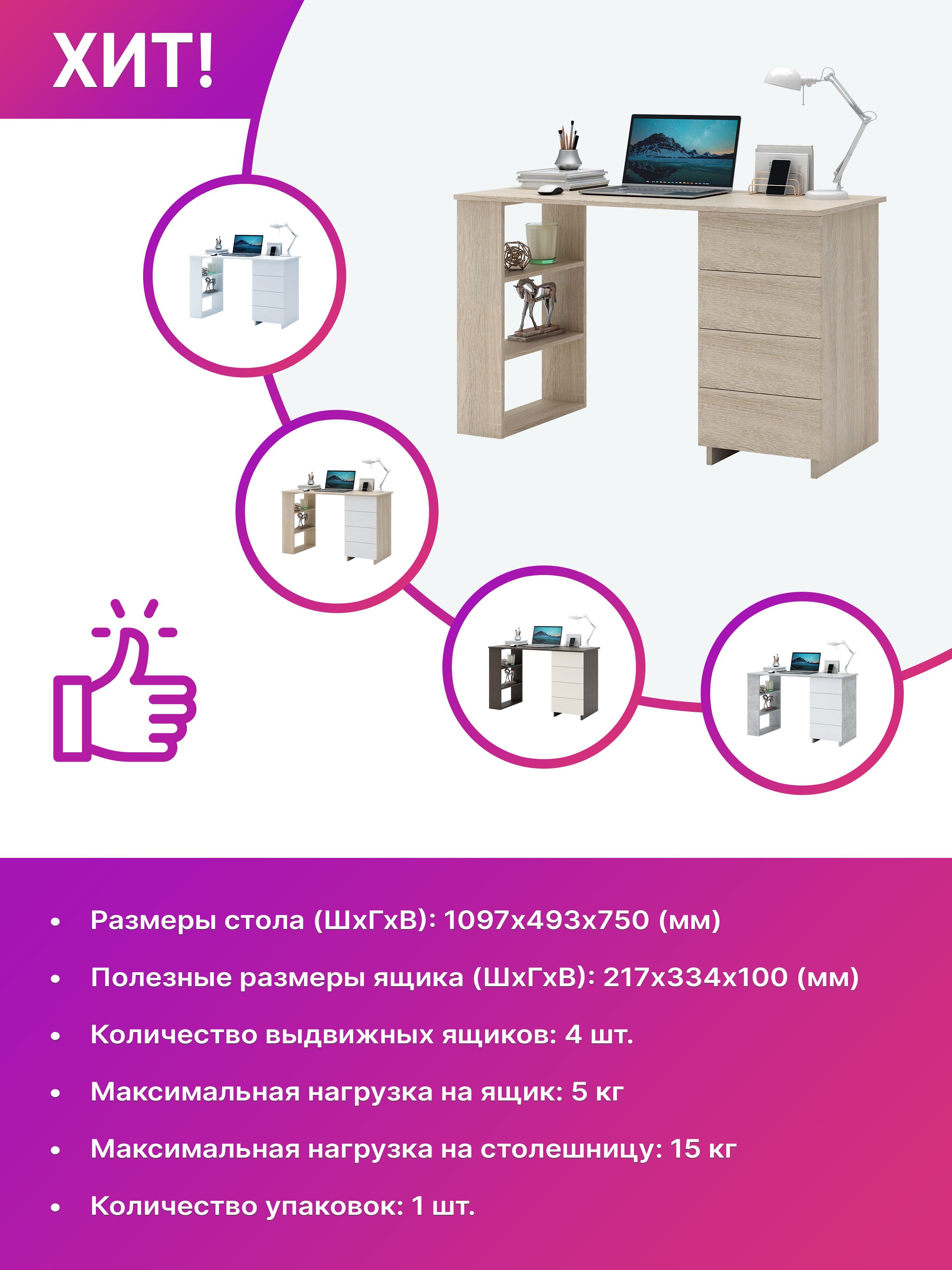 Компьютерный стол, Письменный стол MFMaster Милан 51, 109.6х59.6х75 см