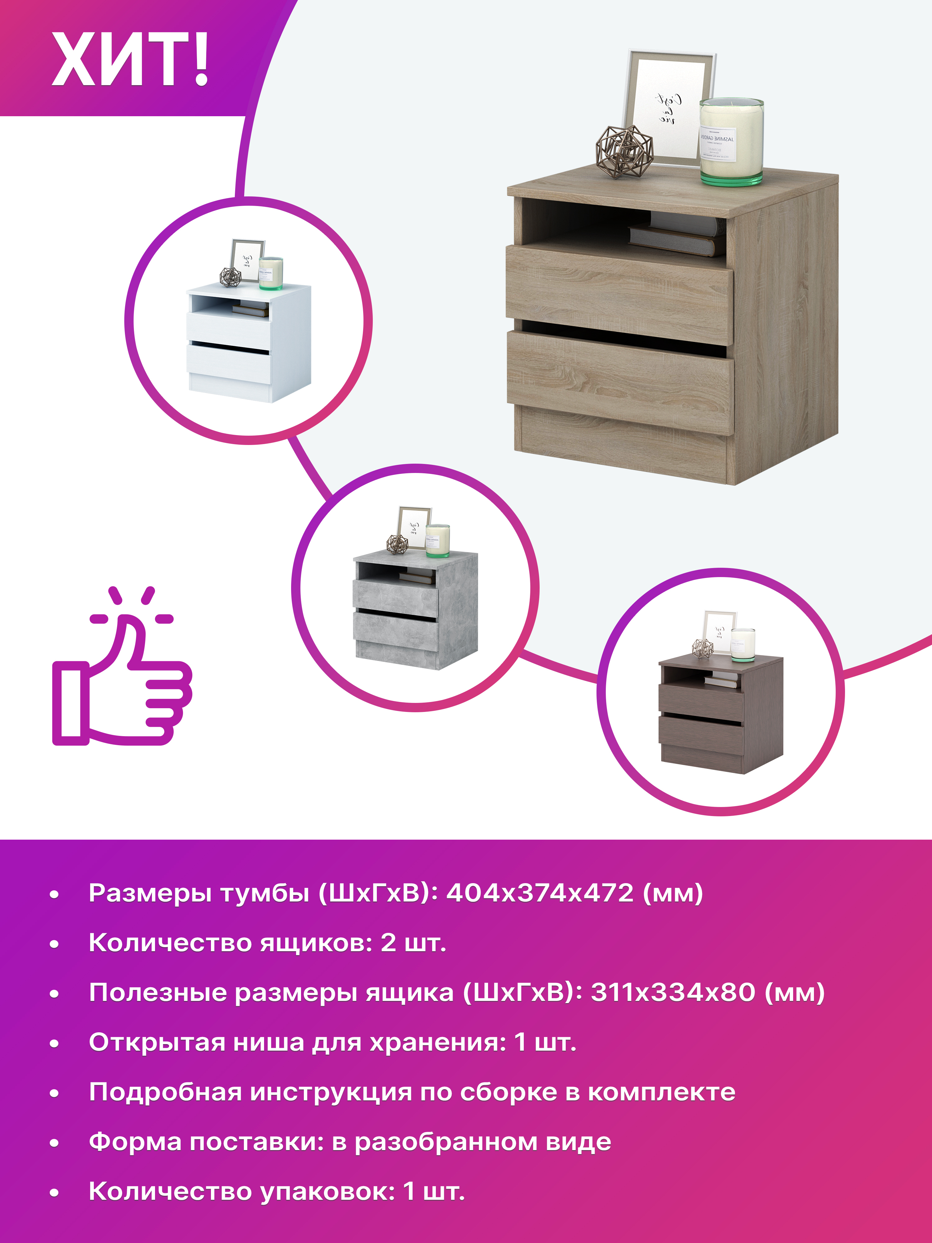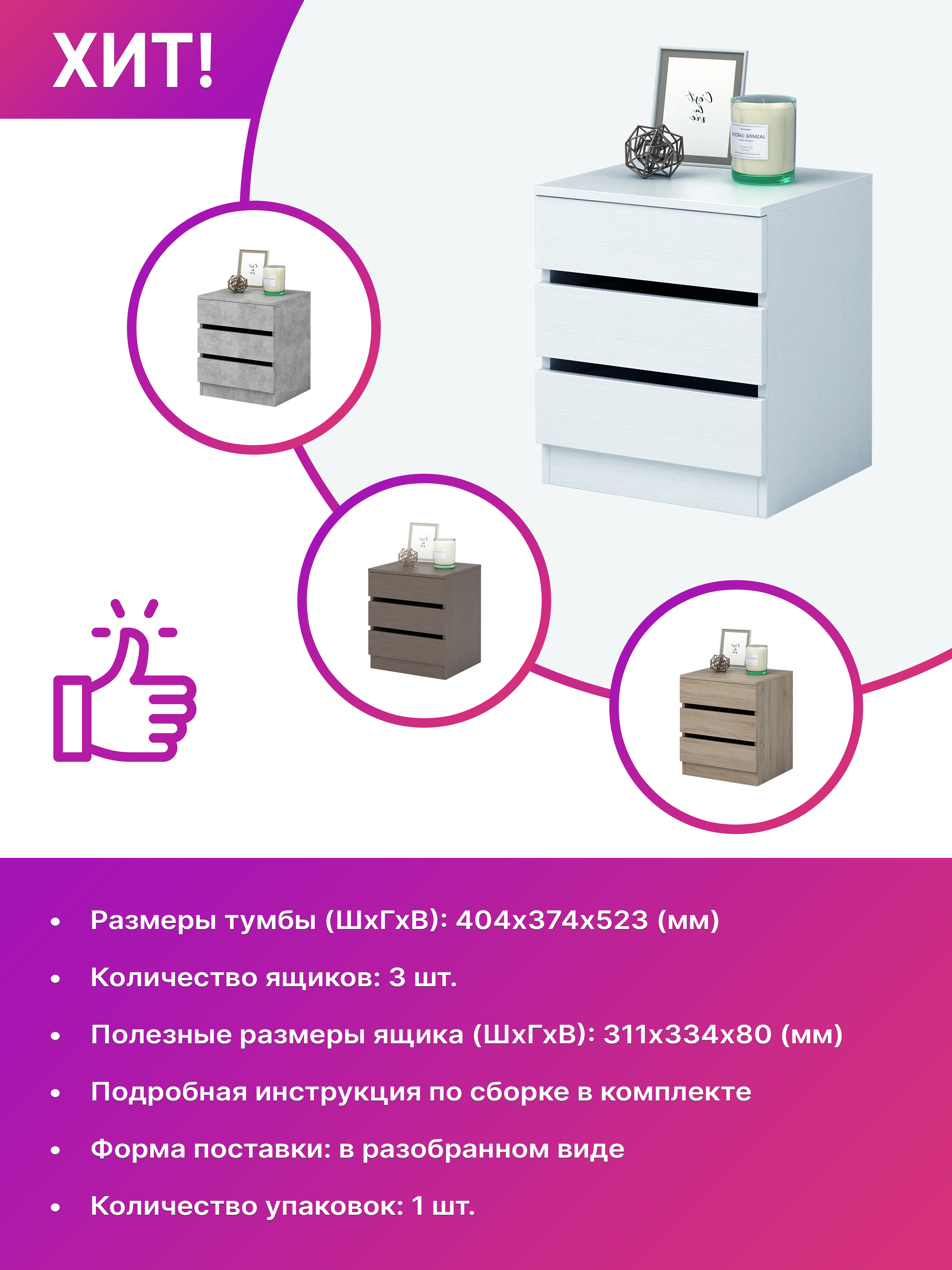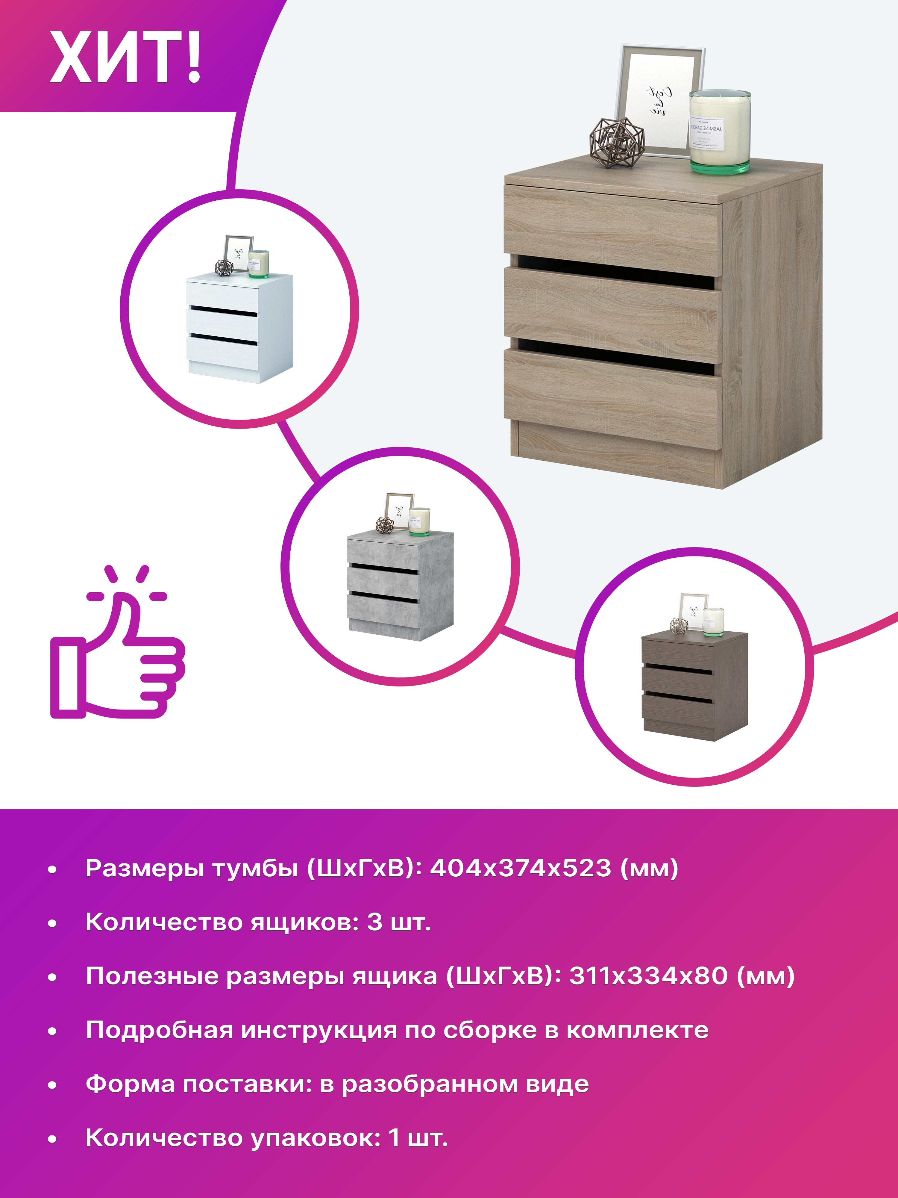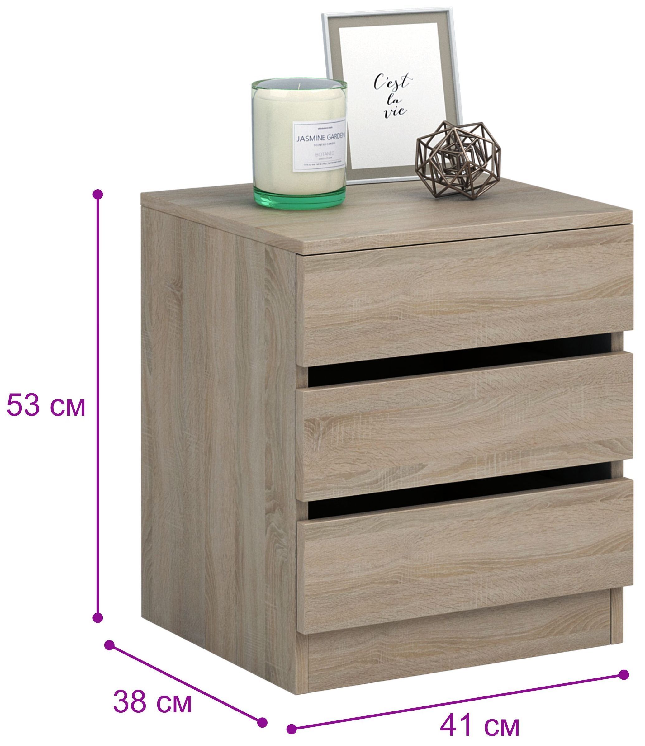 Тумба прикроватная MFMaster Trivero-6, 3 ящ., 40.4х37.4х52.3 см