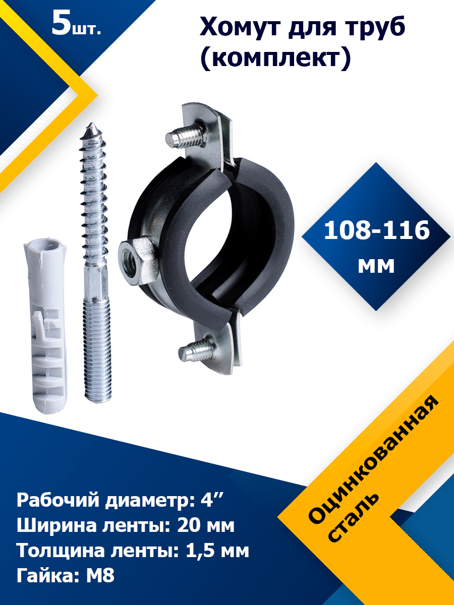 Хомут для труб (комплект) 4 дюйма (108-116 мм) М8