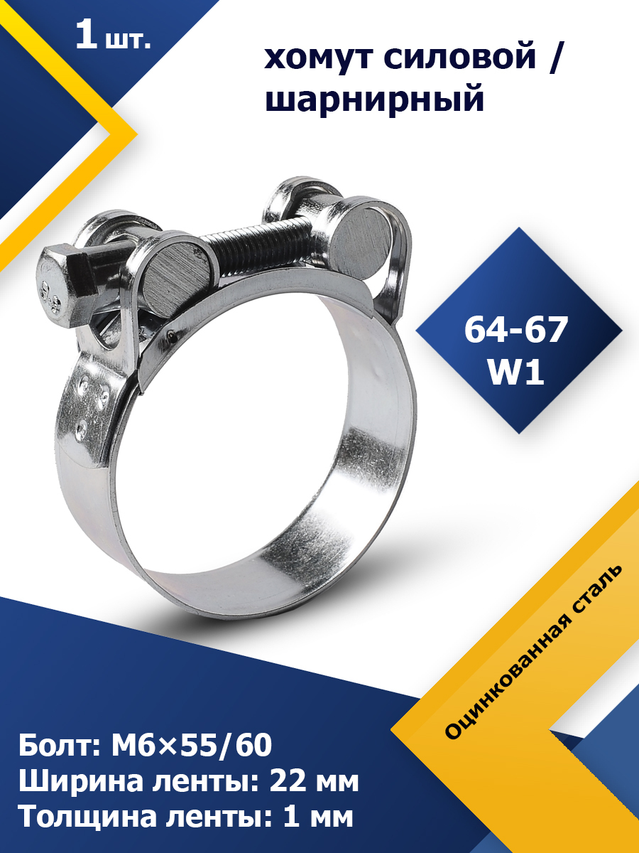 Хомут Mgf 22мм x от 64мм до 67мм, 1 шт., Оцинкованная сталь