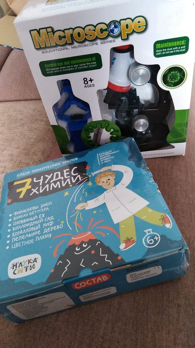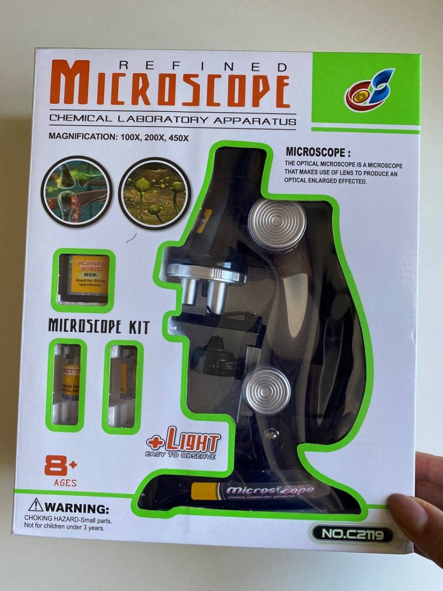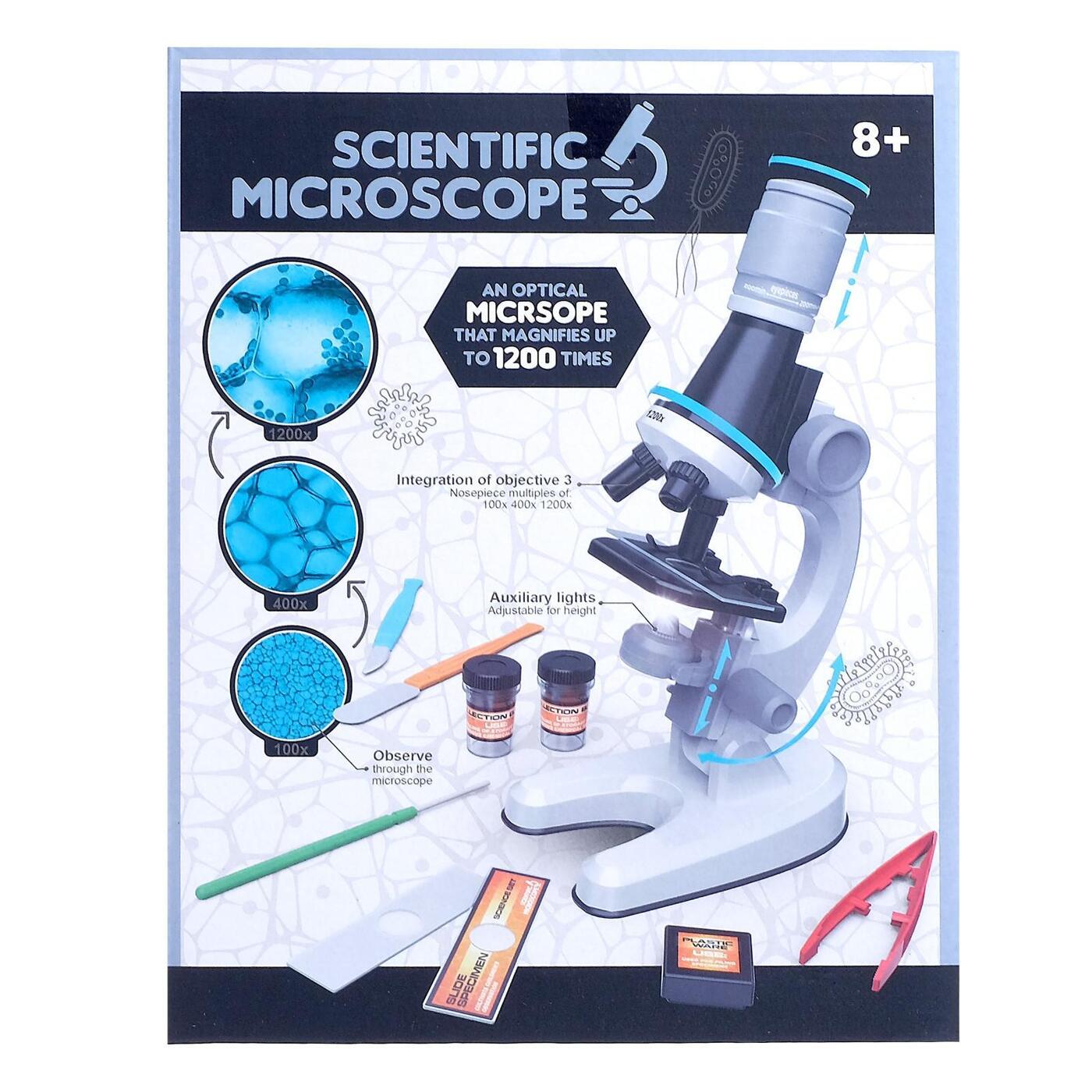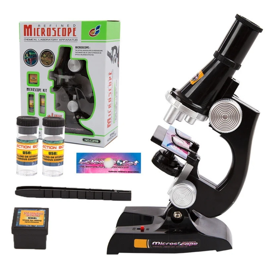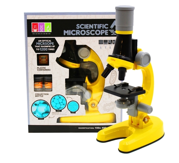 Микроскоп, микроскоп детский с набором для опытов, увеличение в 450х, 200х, 100х