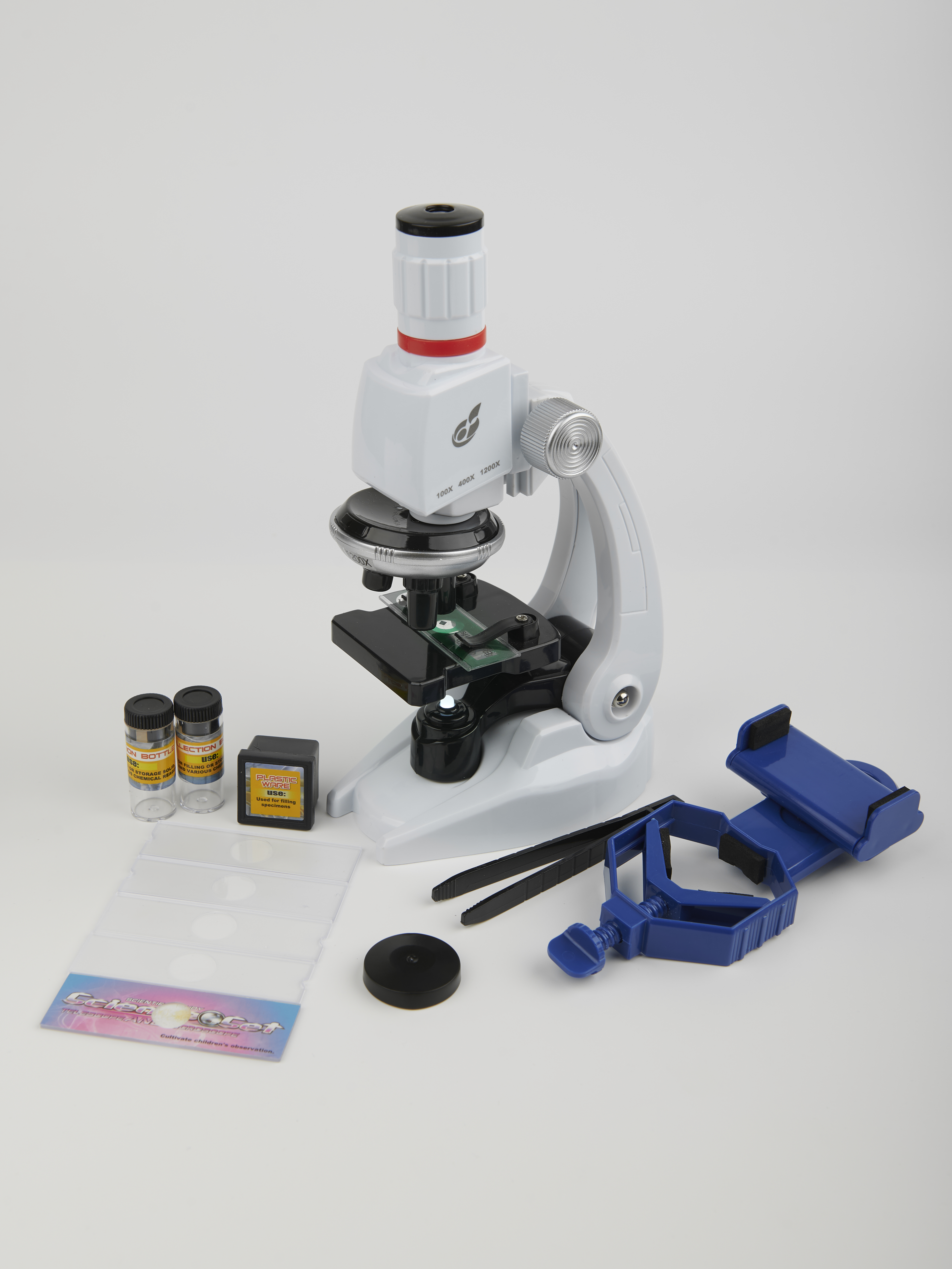 Микроскоп, микроскоп с фиксатором для телефона, увеличение в 100х, 400х, 1200х Уцененный товар (№3)