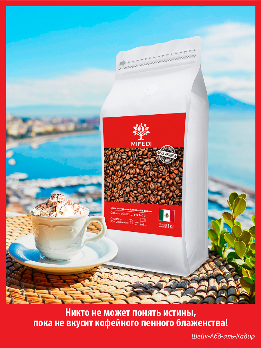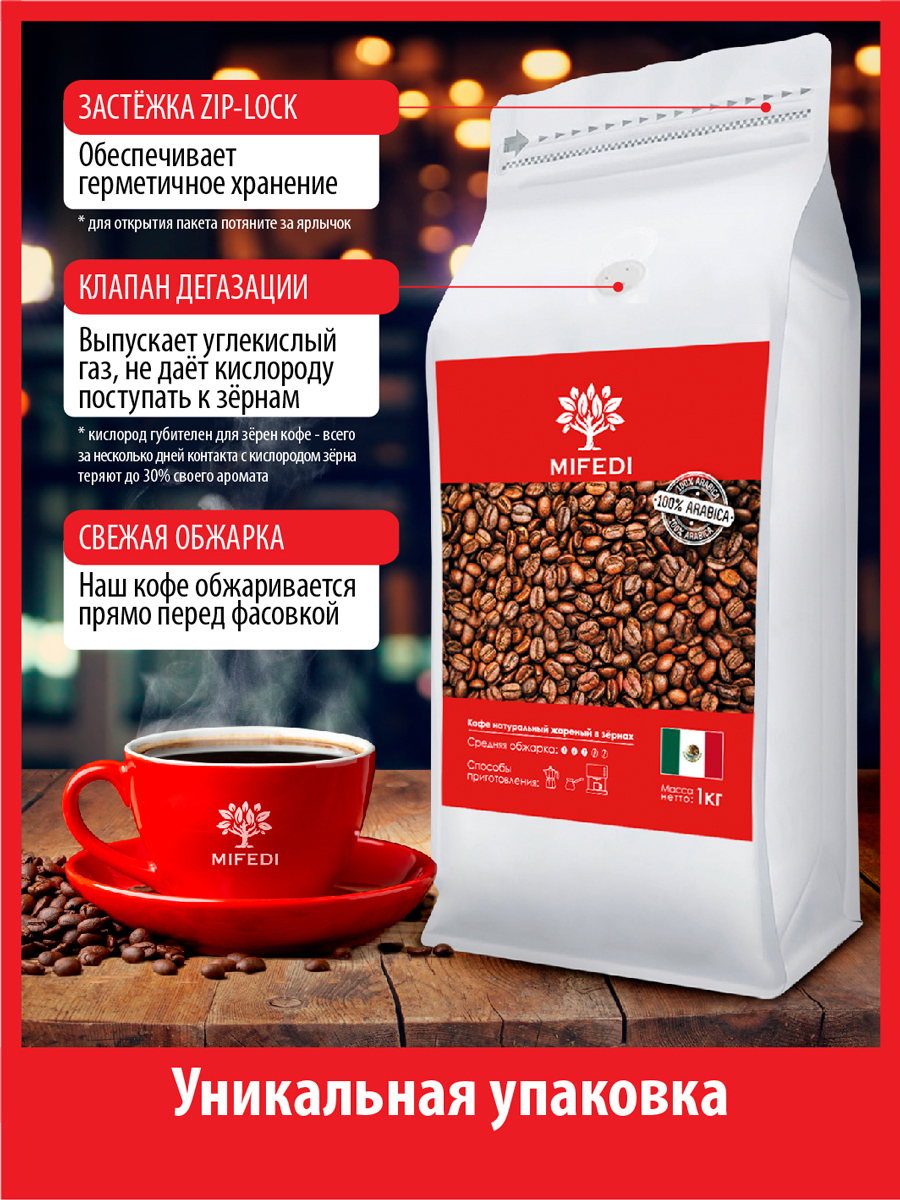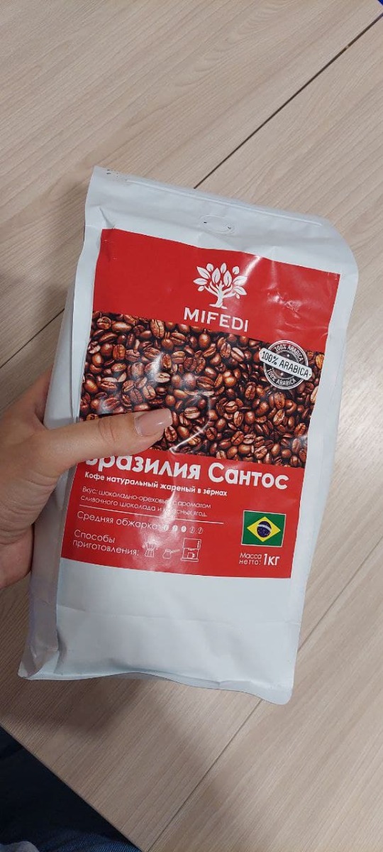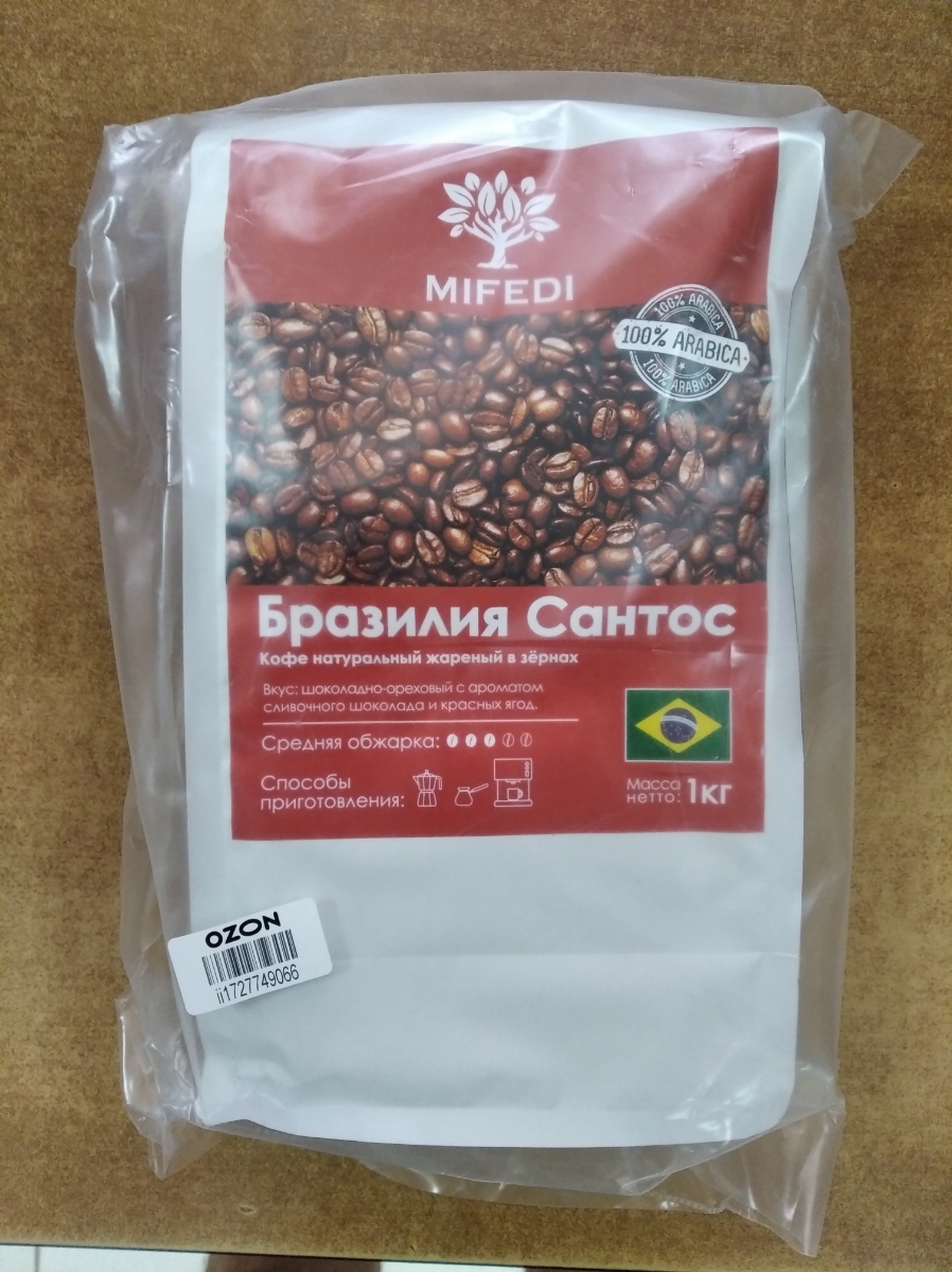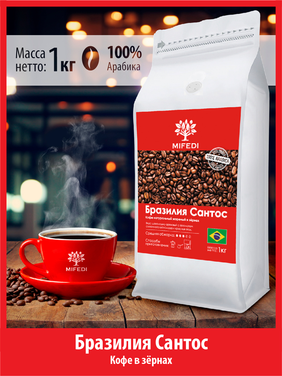 Кофе в зёрнах 1 кг БРАЗИЛИЯ САНТОС арабика 100% кофе зерновой свежая обжарка кофе в зернах моносорт МИФЕДИ