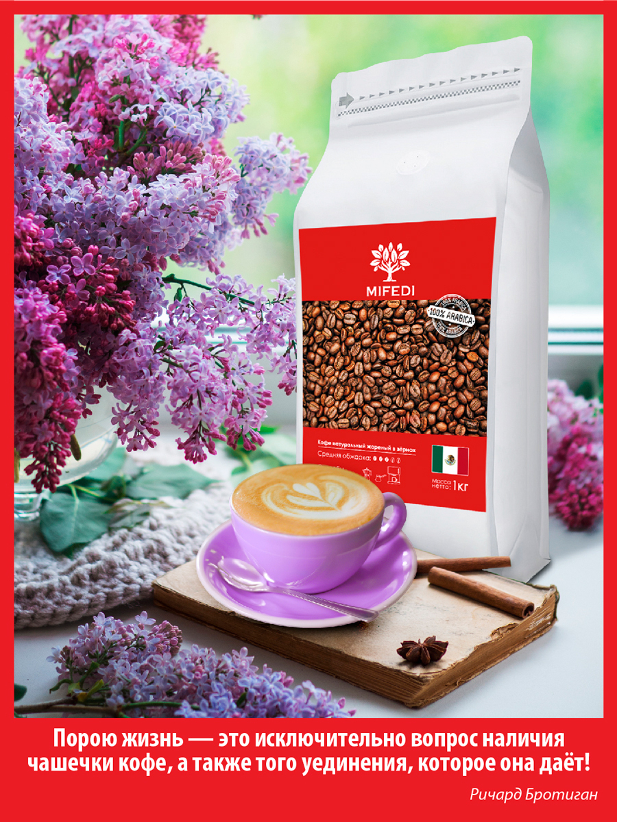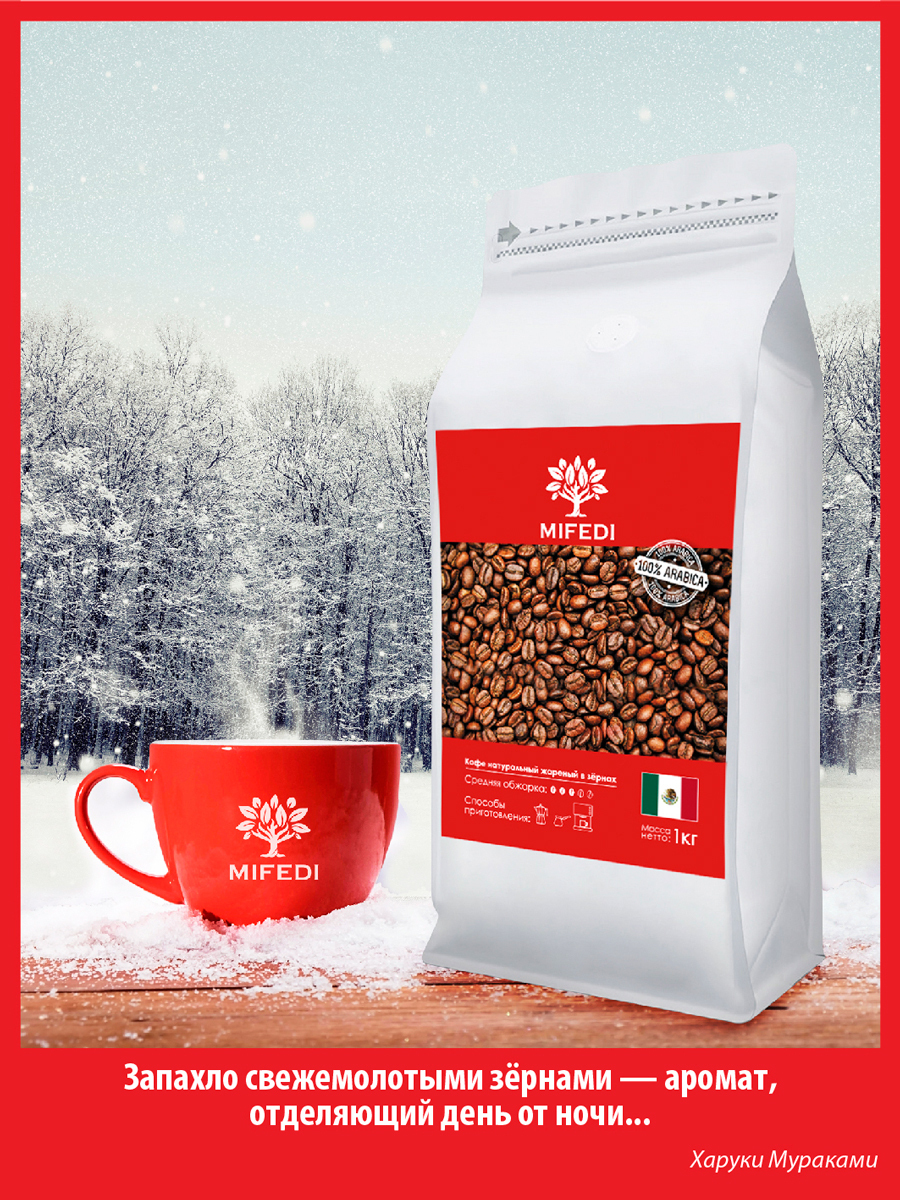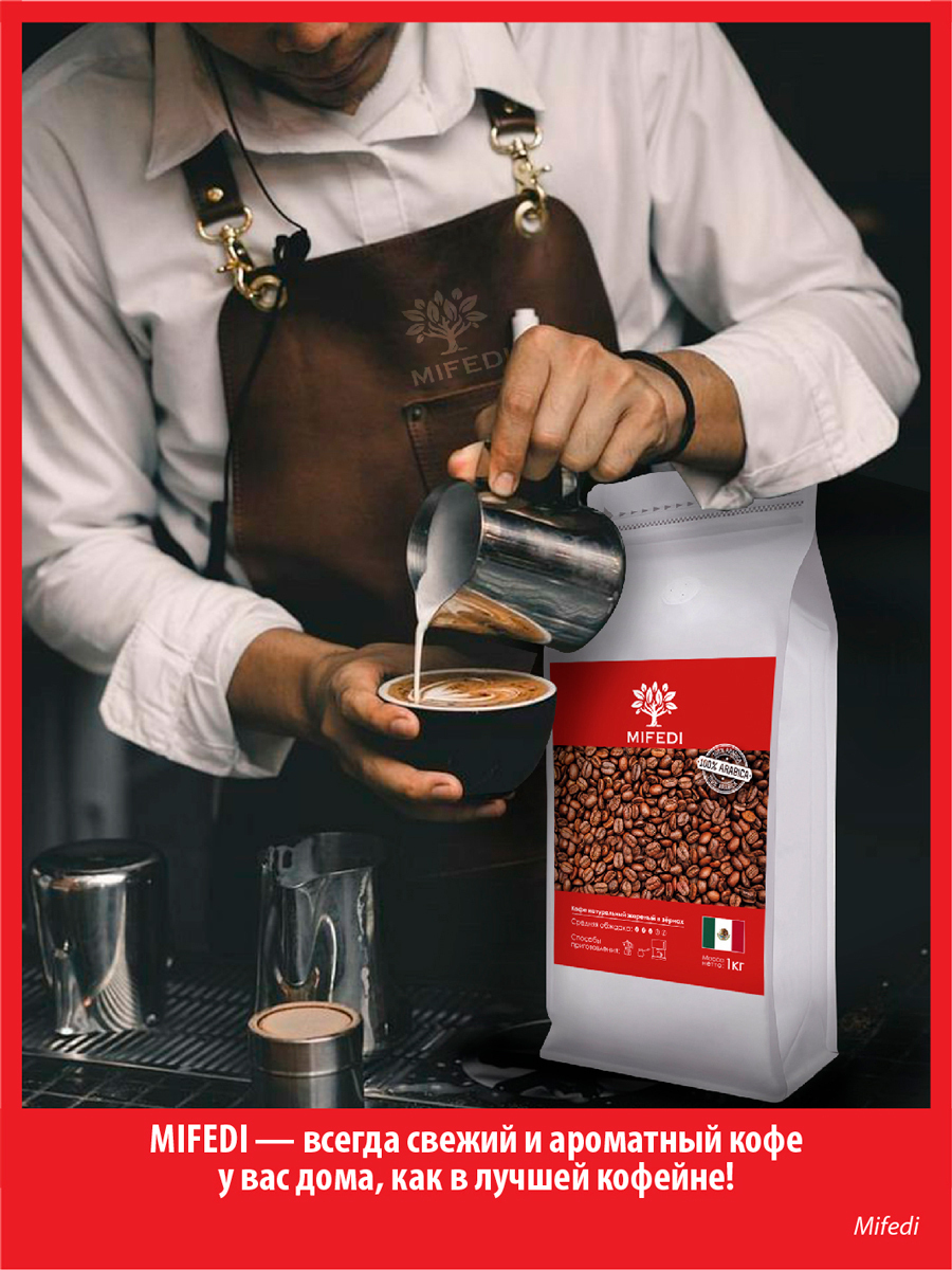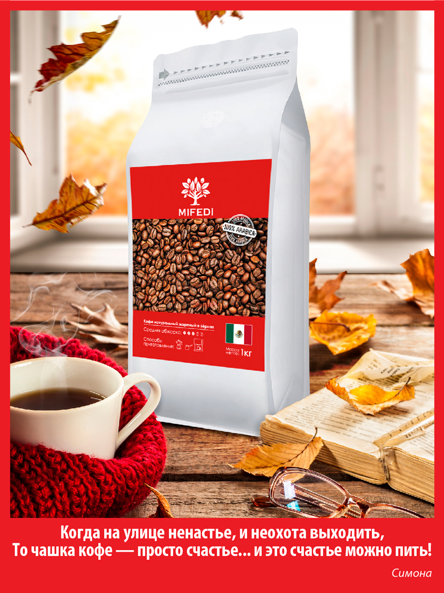 Кофе в зёрнах 1 кг БРАЗИЛИЯ САНТОС арабика 100% кофе зерновой свежая обжарка кофе в зернах моносорт МИФЕДИ