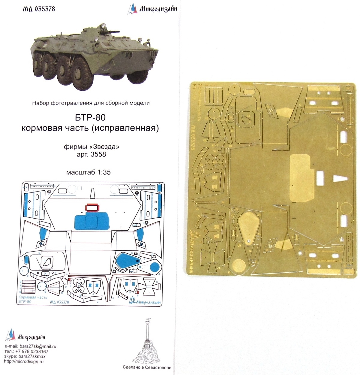 Фототравление Микродизайн БТР-80 Кормовая часть (Звезда), 1/35