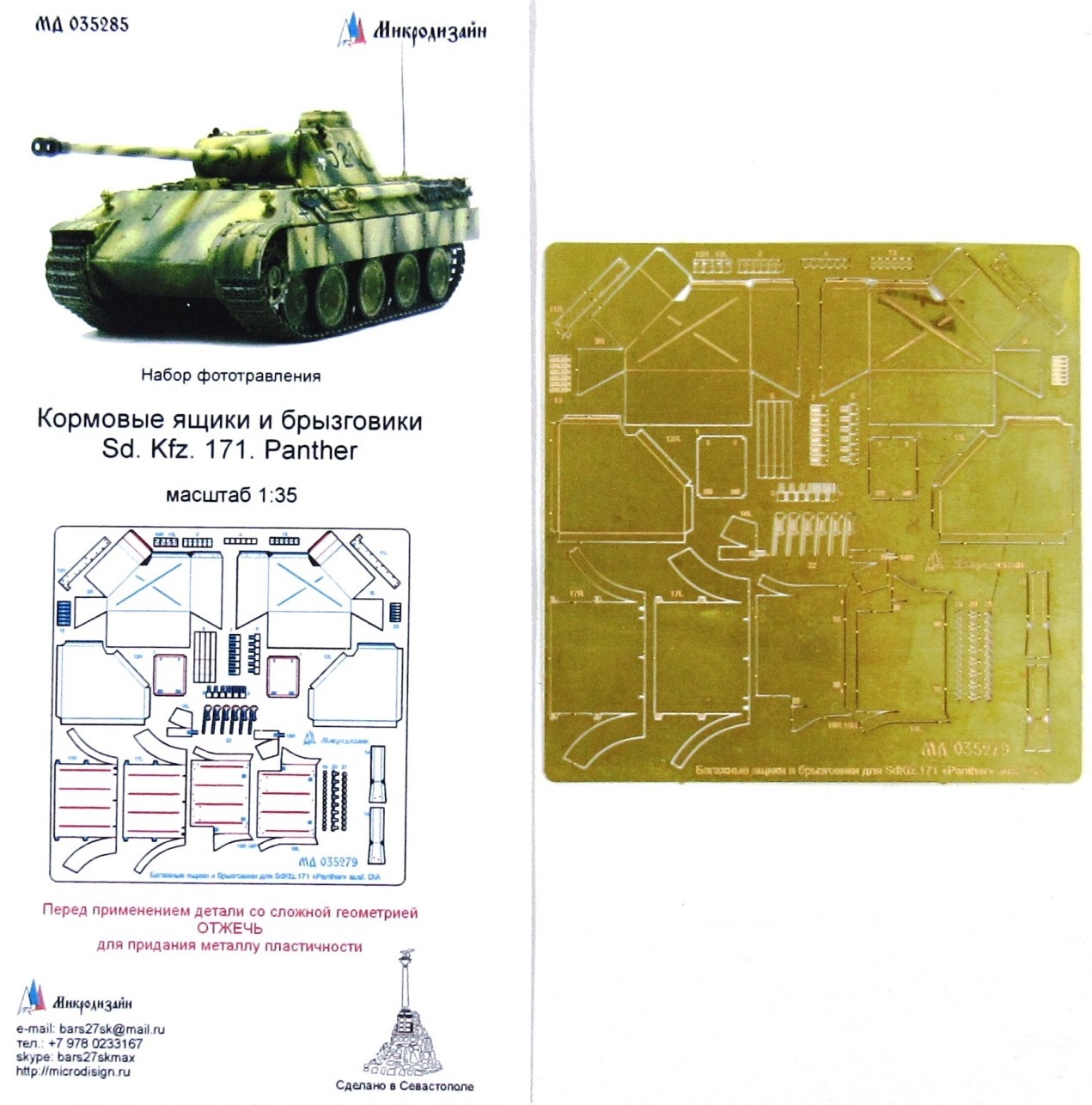 Фототравление Микродизайн Кормовые ящики и брызговики на Sd.Kfz. 171 Panther (Звезда), 1/35