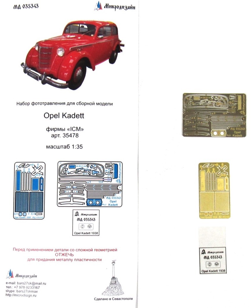 Фототравление Микродизайн Opel Kadett 1938 (ICM), 1/35