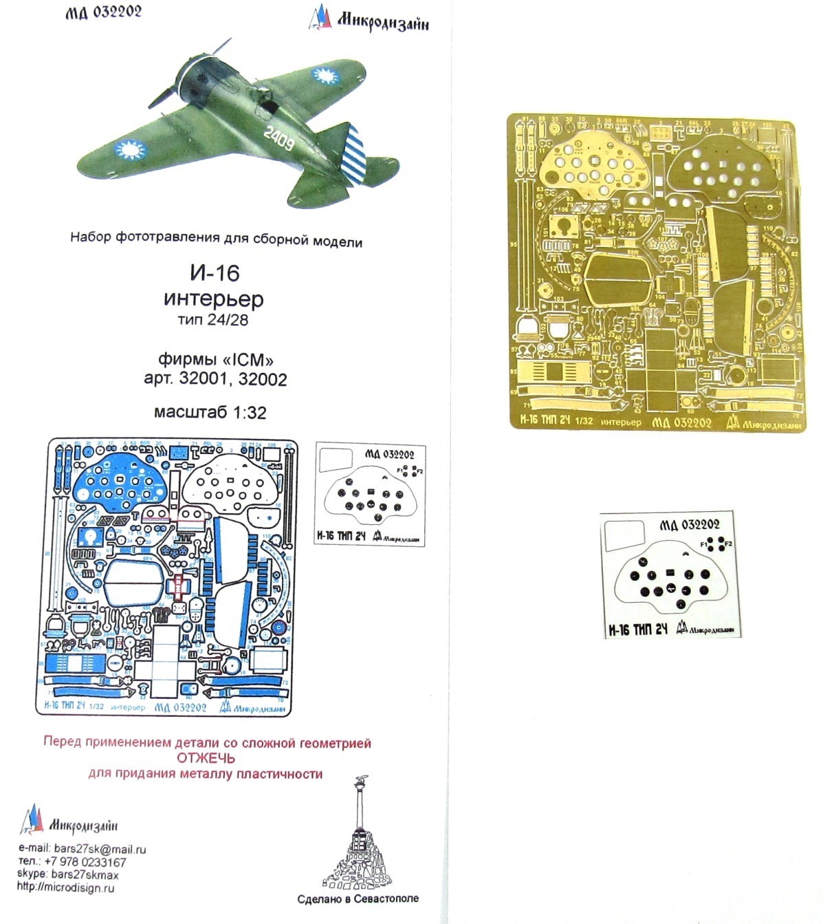 Фототравление Микродизайн И-16 тип 24/28. Интерьер (ICM), 1/32