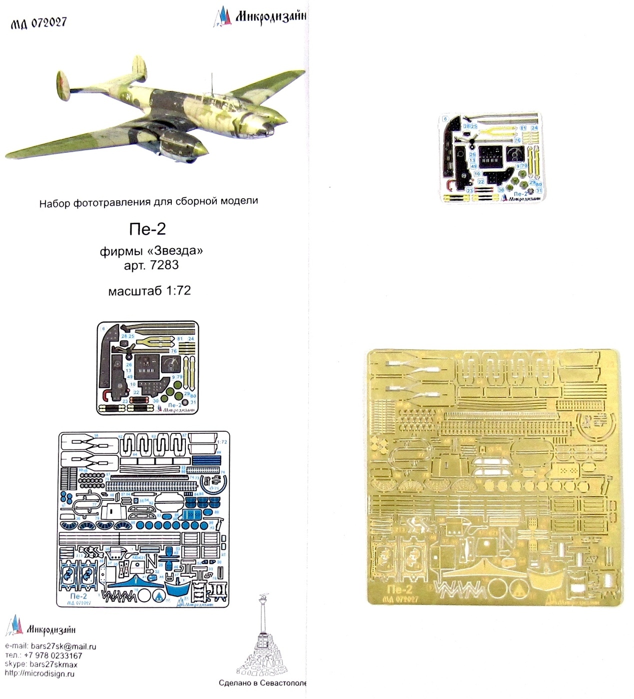 Фототравление Микродизайн Пе-2 Цветное (Звезда), 1/72