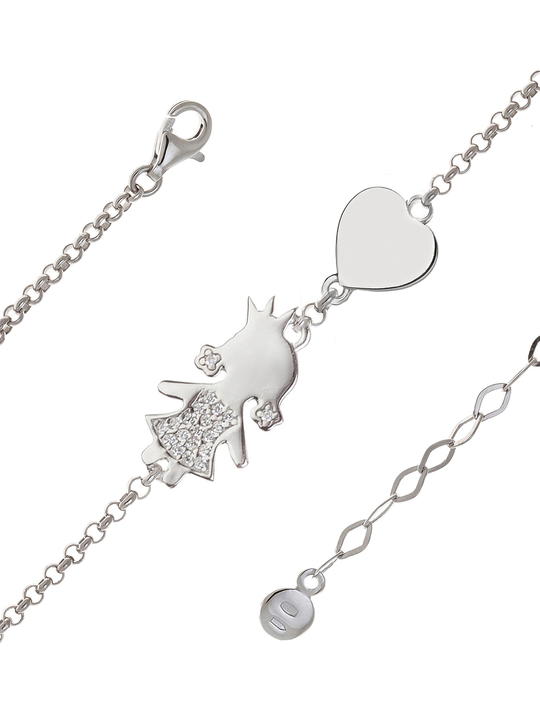 Milanti Браслет Девочка с сердцем под гравировку, серебряный для мам с детьми, подарок на новый год