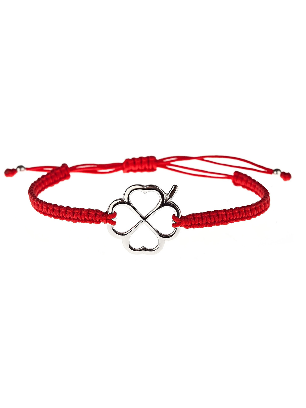 Milanti Браслет Красная нить "Клевер", серебро, на запястье, подарок на новый год